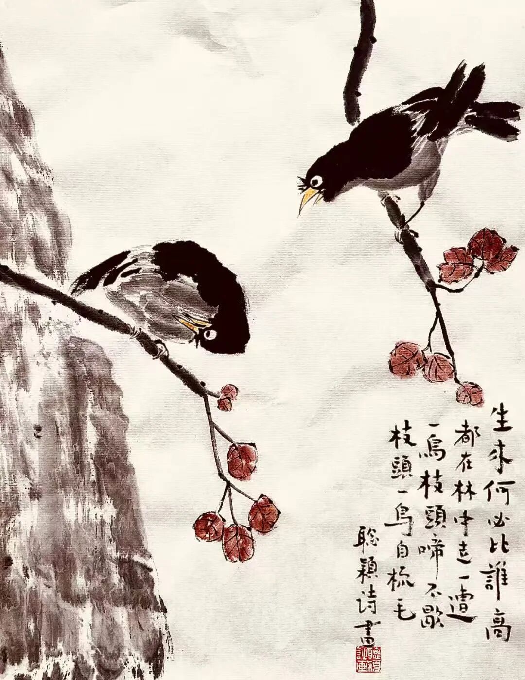 一鸟枝头啼不歇,枝头一鸟自梳毛。