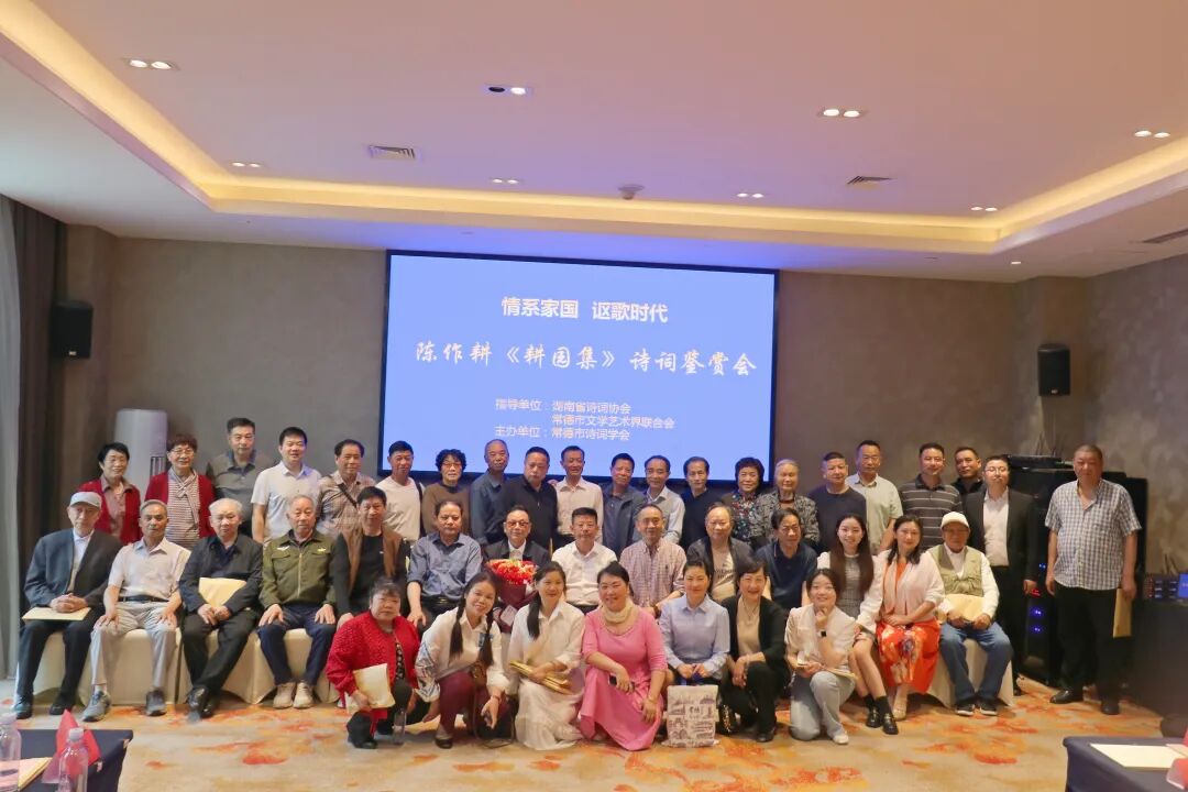 4月19日上午,为了贯彻习近平文化思想,加强诗词学术研究,提升诗词鉴赏水平,促进精品创作,“情系家国,讴歌时代——陈作耕先生《耕园集》诗词鉴赏会”在常德柳园锦江酒店圆满举行。