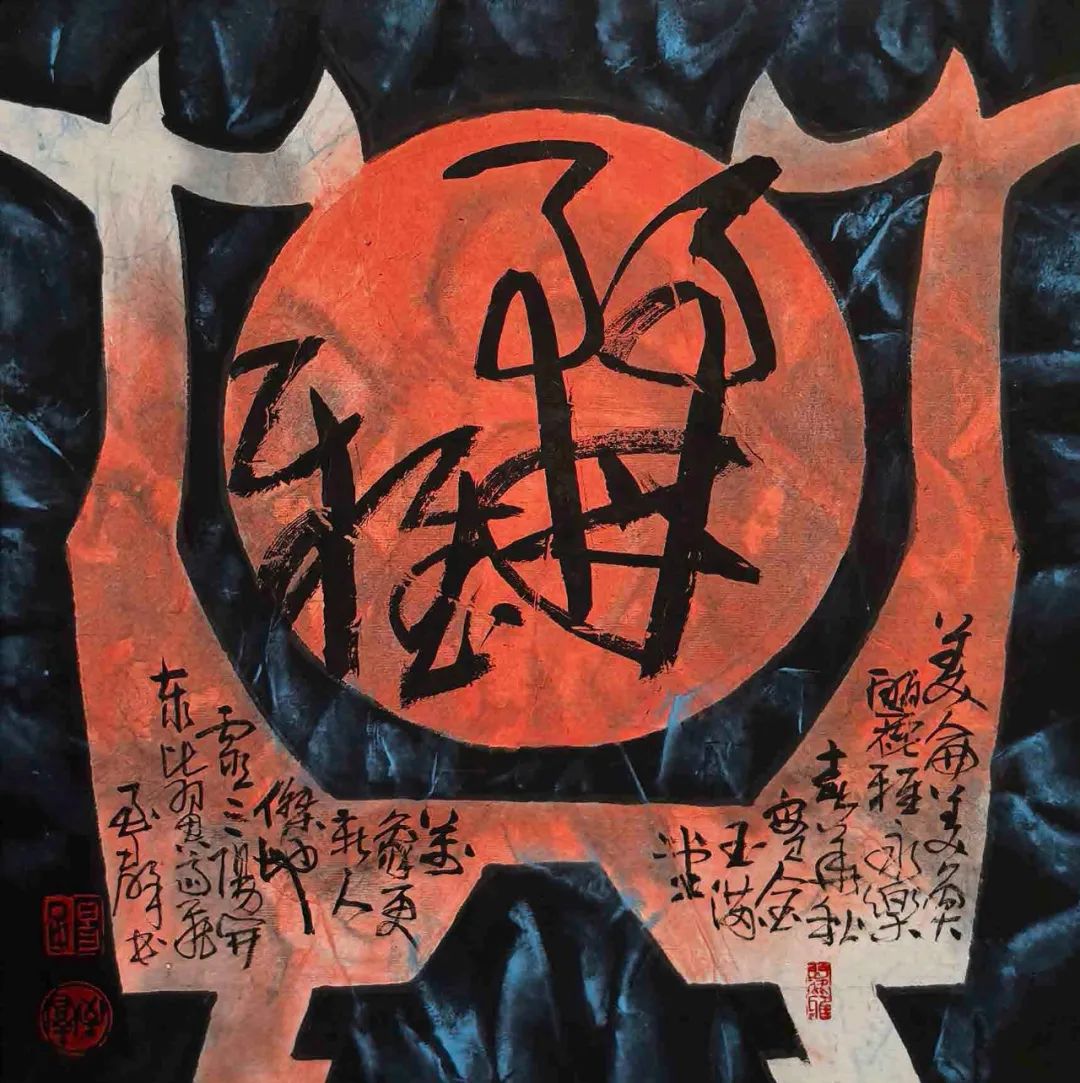易至群先生的书法与书法画创作,我要特别推介他的《网状书法》系列与《彩光墨影书法画》系列。在我看来,前者是在传统书法的基础上寻求现代性转换的初步尝试,后者则是在做着融抽象绘画与抽象书法于一炉的进一步探索,这两个系列作品在提取传统书法元素进行当下创造时显得更为成功,所以我特别看重。最近,在与易先生的交流中,他专门谈到了苦练中国书法的往事。他这样说道:“读书时,我在关山月先生的悉心指导下,重点临了颜真卿的《祭侄文稿》与《争座位》贴,我认为,若与王羲之行的行草书相比。王书是‘秀美’,而颜书是‘壮美’。此后,我又学了唐代怀素、张旭的大草与狂草,受益匪浅。”如果联系易先生的艺术创作加以分析,其书法功底无疑起到了相当重要的作用。《易子至群书法作品》一书由美国中联公司与西罗亚企业有限公司联合出版,较为详尽的介绍了他本人由《网状书法》系列过渡到《彩光墨影书法画》系列的具体过程。我注意到,在前期,他基本上是在传统书法的书写框架中做小改造,比如作品《铸魂》,就仍然在保持文字可识性的特点时,有意追求画面具有网状构图特点与特殊关系的现代画意效果,不但注重字型风趣或于险峻中求平衡,而且对于线质处理特别用心,即仍然很强调借用传统钟鼎文、篆书或草书般的笔意处理那些可识的汉字,只不过出于表现的需要,他更着意于纯粹的线条美、笔势美、造型美、墨韵美、构成美。可是,在处理《彩光墨影书法画》时,以作品《书法画08116》为例,他显然已完全突破文字可识性的约束,即从一个现代人的审美追求出发,他大胆逸脱于传统书法的格式规范之外,既着意将种种书体中的字符作为整体空间的基本素材予以自由化处理,又特别注意画面的色彩与构成效果与对瞬间暴发情感的表达,结果很好的表达了他驰骋的心理,同时也给人以不同于传统书法的特殊感受。我想,这也许就是他要称其为《彩光墨影书法画》的原因吧。如果要以世界艺术史为线索,我认为,易至群先生大约是受到了西方字母主义及抽象书写等流派的影响。据不同版本的《西方艺术史》记载,将字母或单词当作标记图案与象征性符号的做法可谓早矣,这一点人们在现存的象形绘画、库菲克陶器、中世纪手写本彩饰、早期文艺复兴的艺术品上均可体会得到。到了近代,从英国的新美术运动开始,历经立体主义、达达主义、构成主义、拼贴主义、直至字母主义与抽象书法运动,一些艺术家们在“单词艺术”的名义下所搞的艺术实验越来越甚,概括地看,恢复文字符号之神秘感和魅力感的有之;强调文字符号在视觉或美学上的作用有之;对词性与单词结构进行新的荒诞组合的亦有之。五花八门,无所不有。应当说,易至群先生的相关创作就根植在这样一些美术史问题的背景之中。据我猜测,这些美术史知识,无形中影响了他的艺术观念与画面构成意识。不过,基于自己的艺术理念:首先,他将传统文字的基本结构——如片断的钟鼎文、篆书、草书等抽离出来,然后将其演变成了自己画面的基本符号和元素,同时,他仍然很强调书法中一次性完成或不可修改的特点。而这既使他的作品气贯笔端,气息悠长,也使其明显突现出顺序感与时间感,而通过作品中那笔与笔的重叠、承接与墨色变化,内行的观众将不难体会到他在创作时的用笔过程;其次,他又机智地选用了深刻体现传统文化:身份的媒体——宣纸、毛笔等作为表现的基础,并在适当强书法用笔及传统意蕴的前提下,较好地借用了西方现代主义的探索成果,即巧妙地将西方抽象表现主义:艺术的若干特点,如对造型性的追求、对至上的追求、对平面构成的追求融入其中。当然,易至群先生的《彩光墨影书法画》远不是抽象绘画。熟悉西方现代艺术史的人都知道,抽象绘画是相对具像绘画而言的。这类作品,不光放弃了对形象与对象的再现,还完全放弃了以各种对象与形象为的想象。只是以纯粹的视觉要素,如:点、线、面、色来构成画面。而他的《彩光墨影书法画》作品明显与此不同。亦即,虽然他在作品中大跨度地超越了传统书法的格局,但由于有效地保留了传统书法中的基本因子,所以,他的《彩光墨影书法画》作品与传统书法仍然有着内在的传承关系。于是便使其与传统书法形成了若即若离的关系。打个不恰当的比喻,这两者就像父子关系一样——儿子虽然与父亲有着血缘上的关系,但决不是父亲本身,他就是他自己。基于以上的理由,我倾向于认为,易至群先生的相关书法画作品已经成功地建立了一条不同于传统书法规范的地平线,必将大有可为。与其相关的是他的《彩光墨影书法画》作品也与现代建筑,还有现代人欣赏作品的方式更加吻合。诚如一些批评家所说的那样,随着社会的变化以及文化背景的不断转换,书法艺术的社会实用功能一直在淡化,而其社会性的审美观赏功能则不断在发展。特别是到了现代,由于书法作品与观众见面的方式,已由传统的近距离把玩的方式转向了远距离欣赏的模式。故人们越来越注重书法作品的抽象之美。毫无疑问,这也恰恰是易至群先生《彩光墨影书法画》作品得以诞生与发展的基础。在这里,我还想强调一下,我在极力肯定易至群先生的上述突破与发展时,绝没有半点贬低传统绘画与书法的意思。就我来说,主要是想强调如下想法:艺术创作