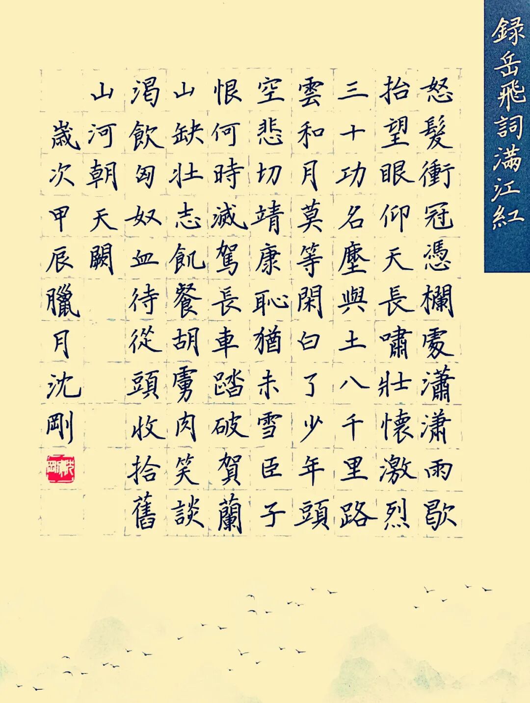沈刚,男,汉族,字汉喆,号朝曙斋主、西园布衣。书法教师:(中国硬笔书法协会会员、中国硬笔书法协会注册书法教师) 1972年6月28日出生于江苏江阴,高中文化,自幼喜爱书法艺术,先后结业于河南书法函授院90届书法专修班、河南青少年书法函授中心、中国书协书法培训中心2012年(上海)第五期临帖班、中国硬笔书法协会2018年(北京)第三期培训认证会等。 现系中国硬笔书法协会会员、江阴市硬笔书法协会会员、江阴市书法家协会会员等。