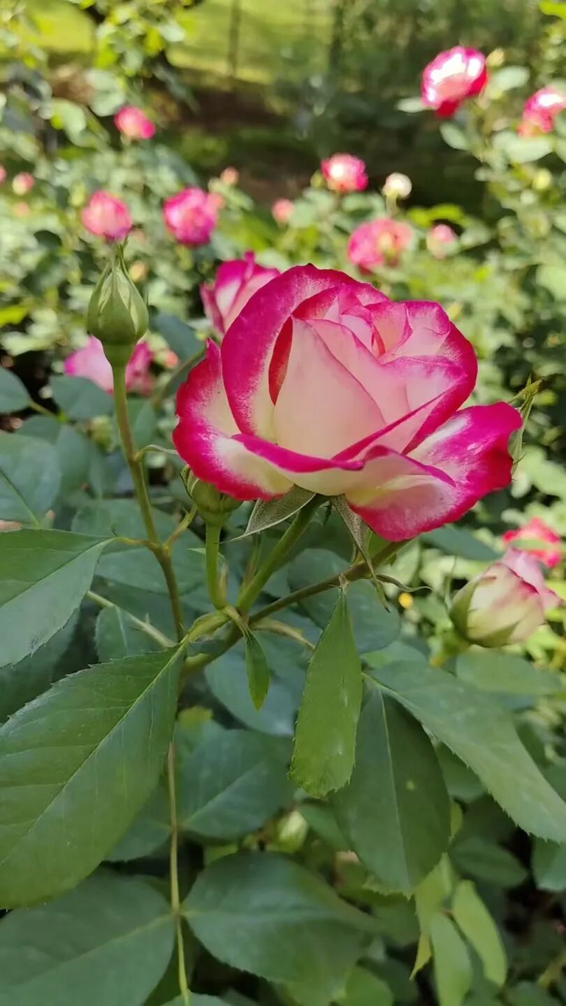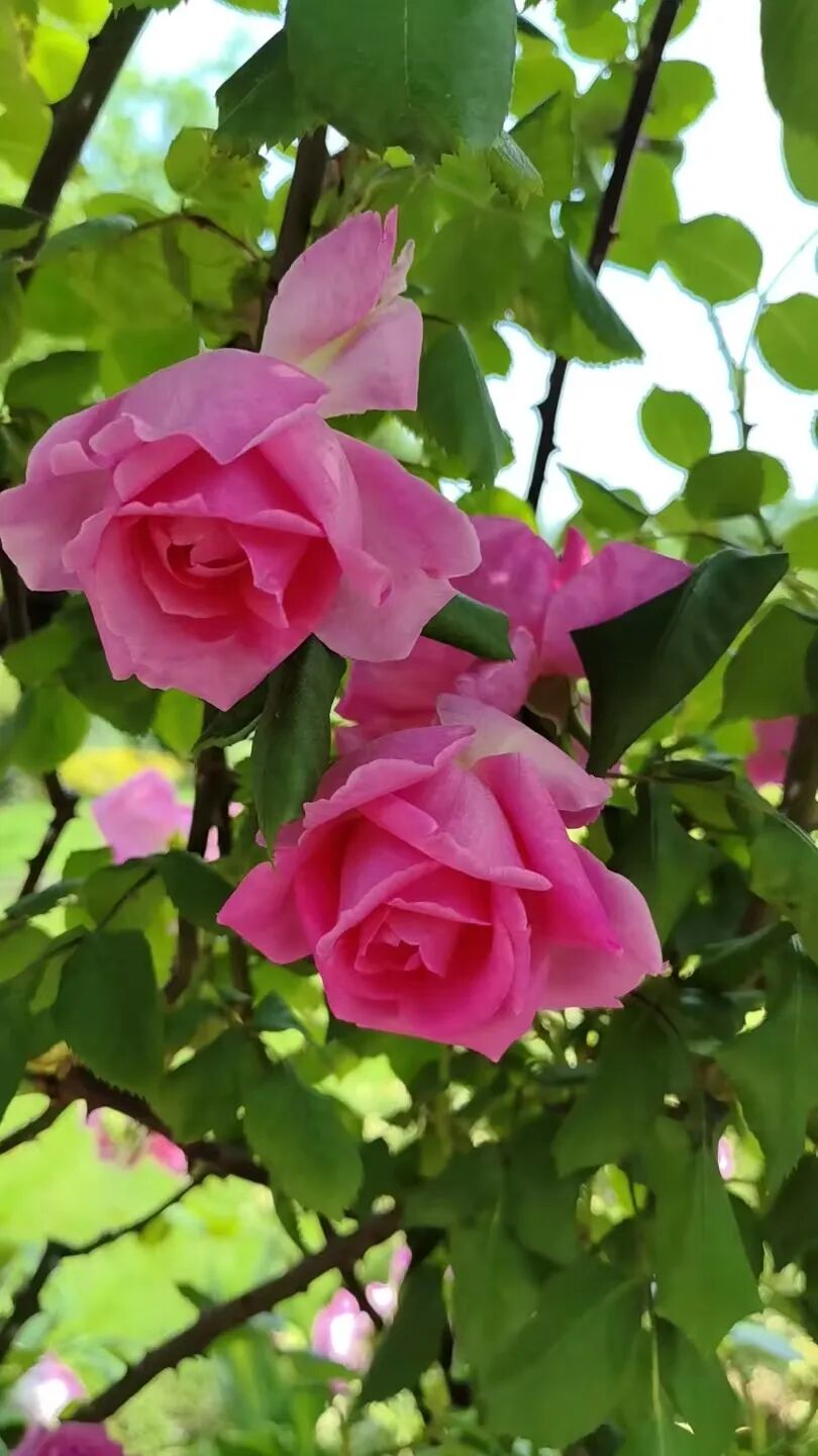 蝶舞蜂飞争蕊畔。杨树青条,农事耕耘绻。丹卉盛开娇艳展。姹奇美艳装家苑。