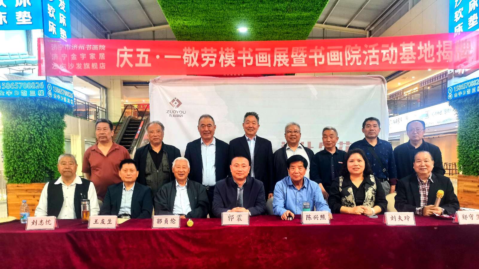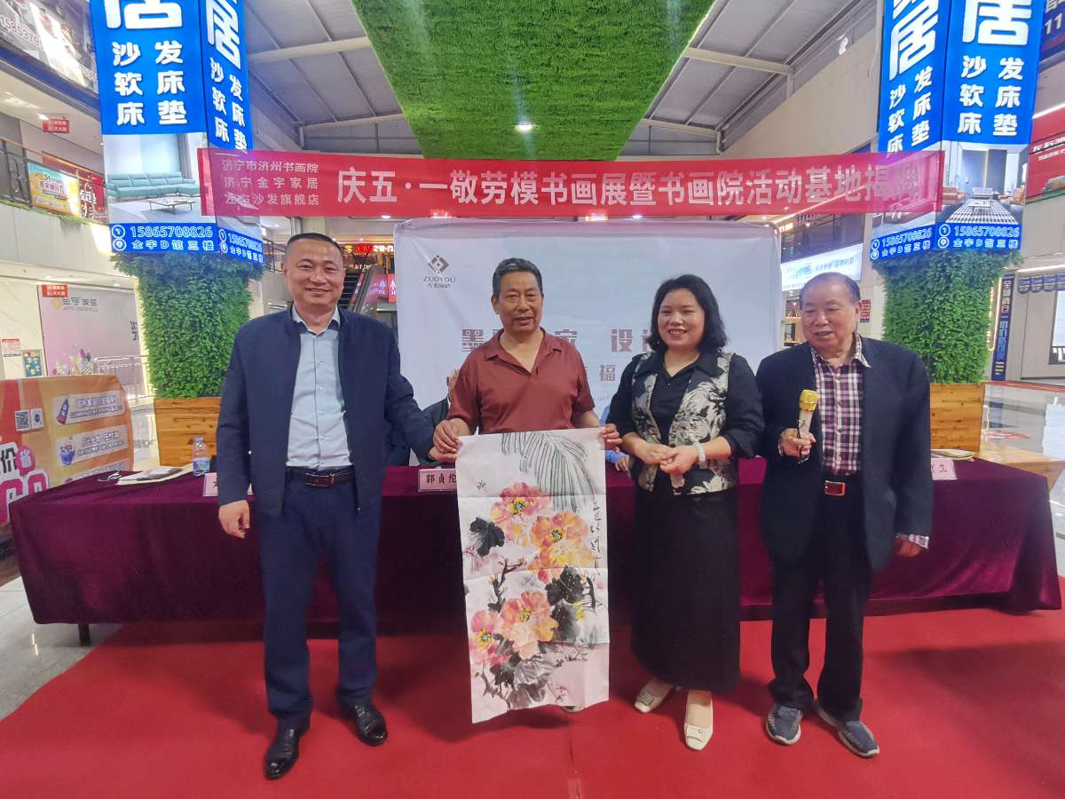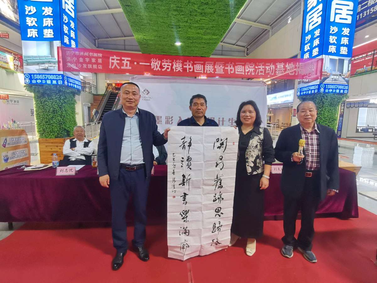 春夏之交,天朗气清。万木葱茏,繁花似锦。2025年4月30日上午,由济宁市济州古城书画院和济宁金宇家居左右沙发旗舰店共同举办的“庆五 · 一,敬劳模”暨书画院活动基地揭牌仪式在济宁金宇家俱城圆满举行。旨在弘扬“五·一”劳动精神,铸就百年“工运”辉煌,弘扬中华优秀传统文化,传承书画国粹,助力民营企业文化建设,共为“文化强市”建设贡献力量。