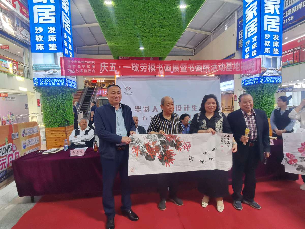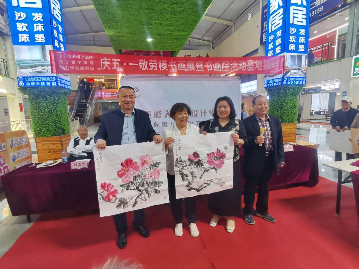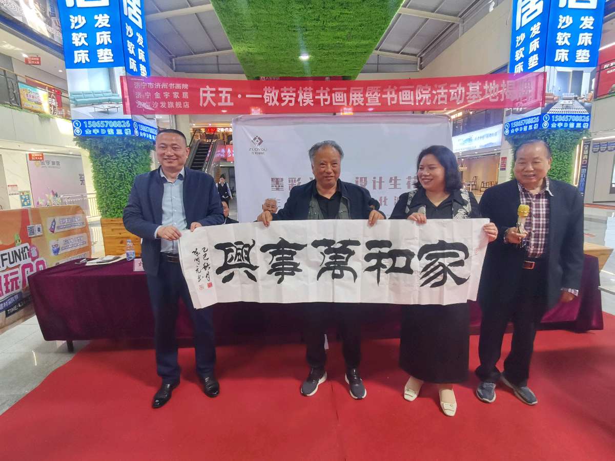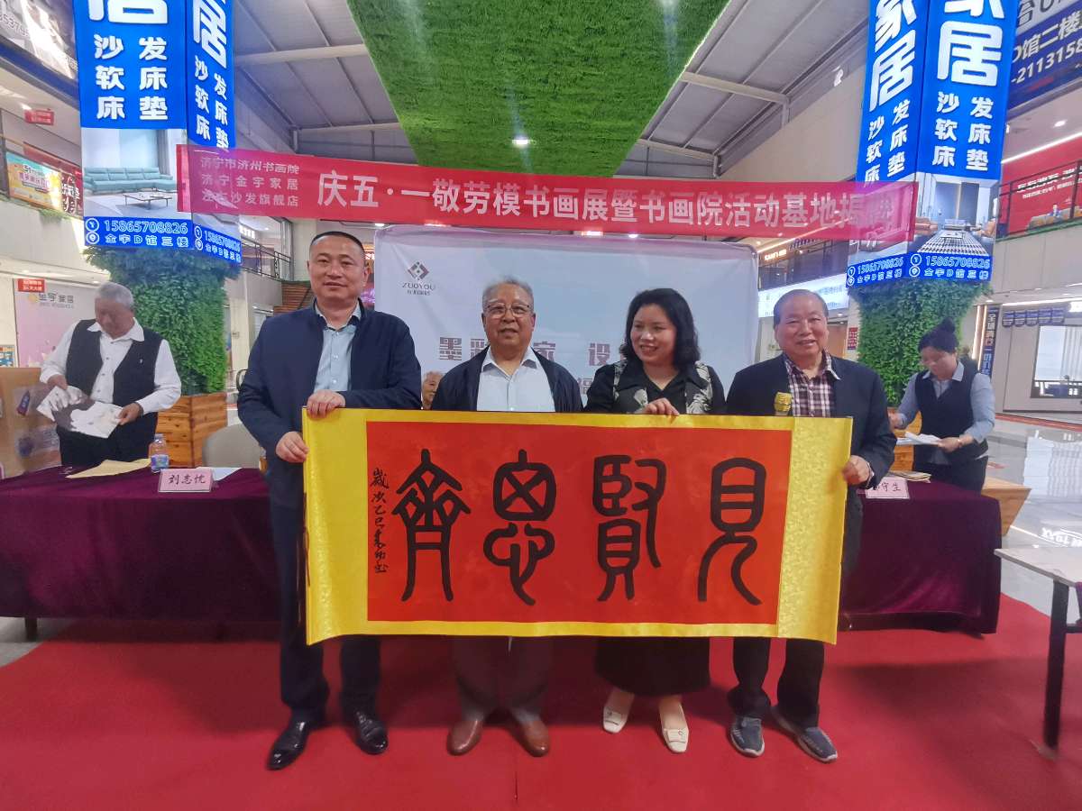 春夏之交,天朗气清。万木葱茏,繁花似锦。2025年4月30日上午,由济宁市济州古城书画院和济宁金宇家居左右沙发旗舰店共同举办的“庆五 · 一,敬劳模”暨书画院活动基地揭牌仪式在济宁金宇家俱城圆满举行。旨在弘扬“五·一”劳动精神,铸就百年“工运”辉煌,弘扬中华优秀传统文化,传承书画国粹,助力民营企业文化建设,共为“文化强市”建设贡献力量。