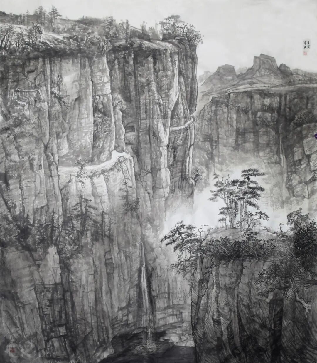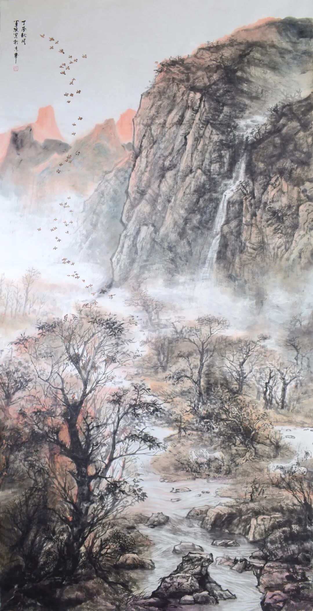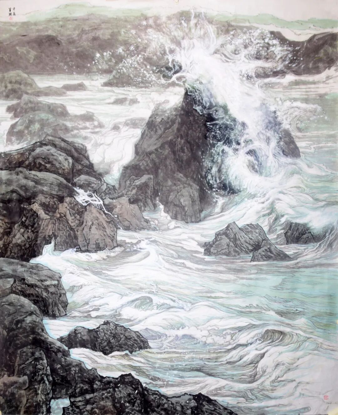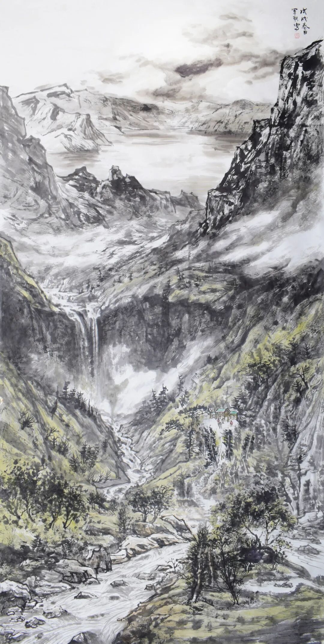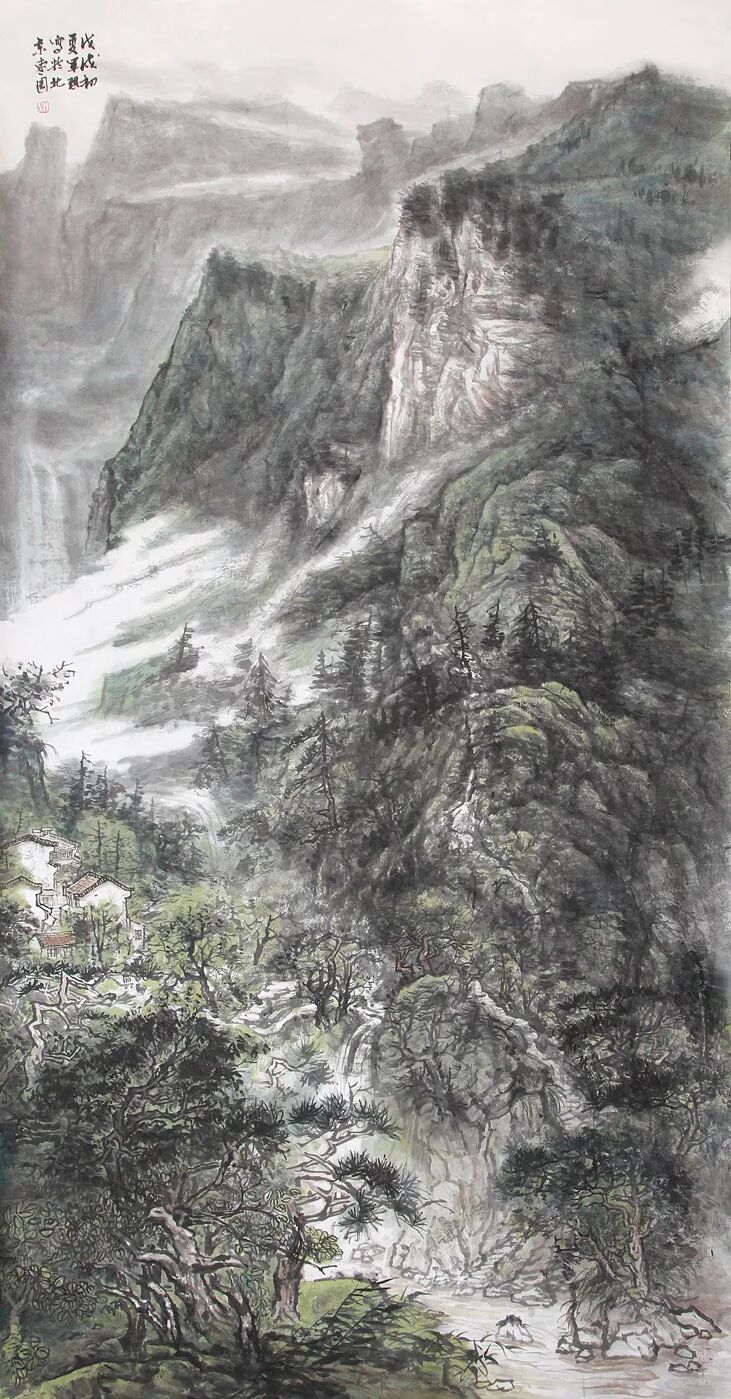 山水画创作中,融合了北宗山水的雄奇与南派山水的流丽,有师于古法的传承脉络,又不失借古开今的自家体貌。