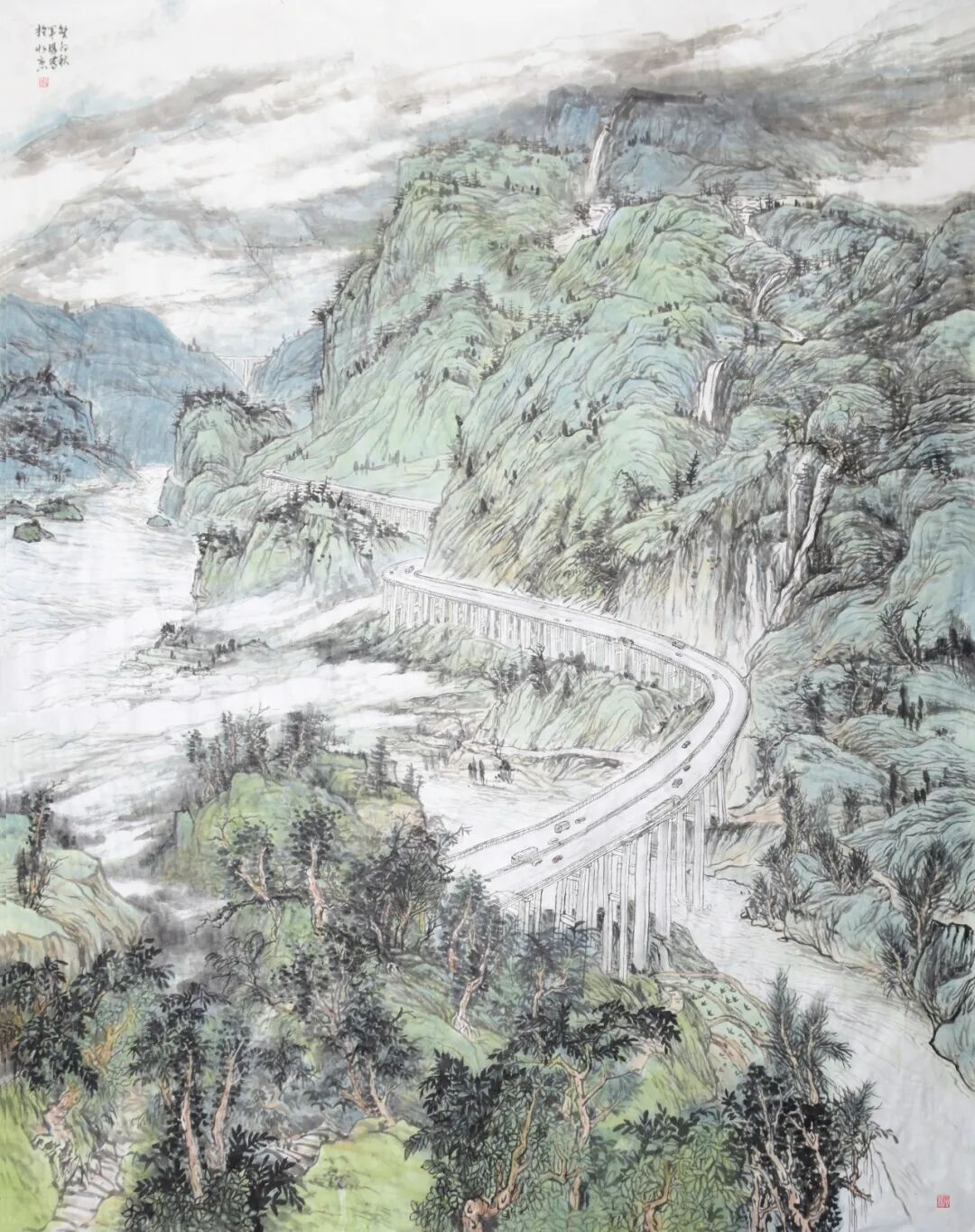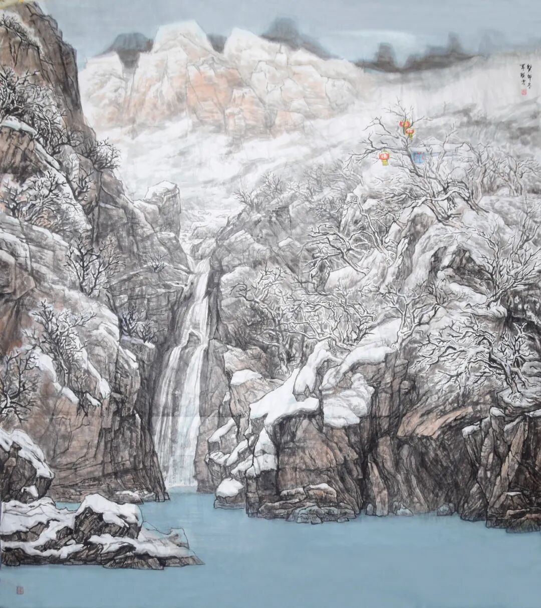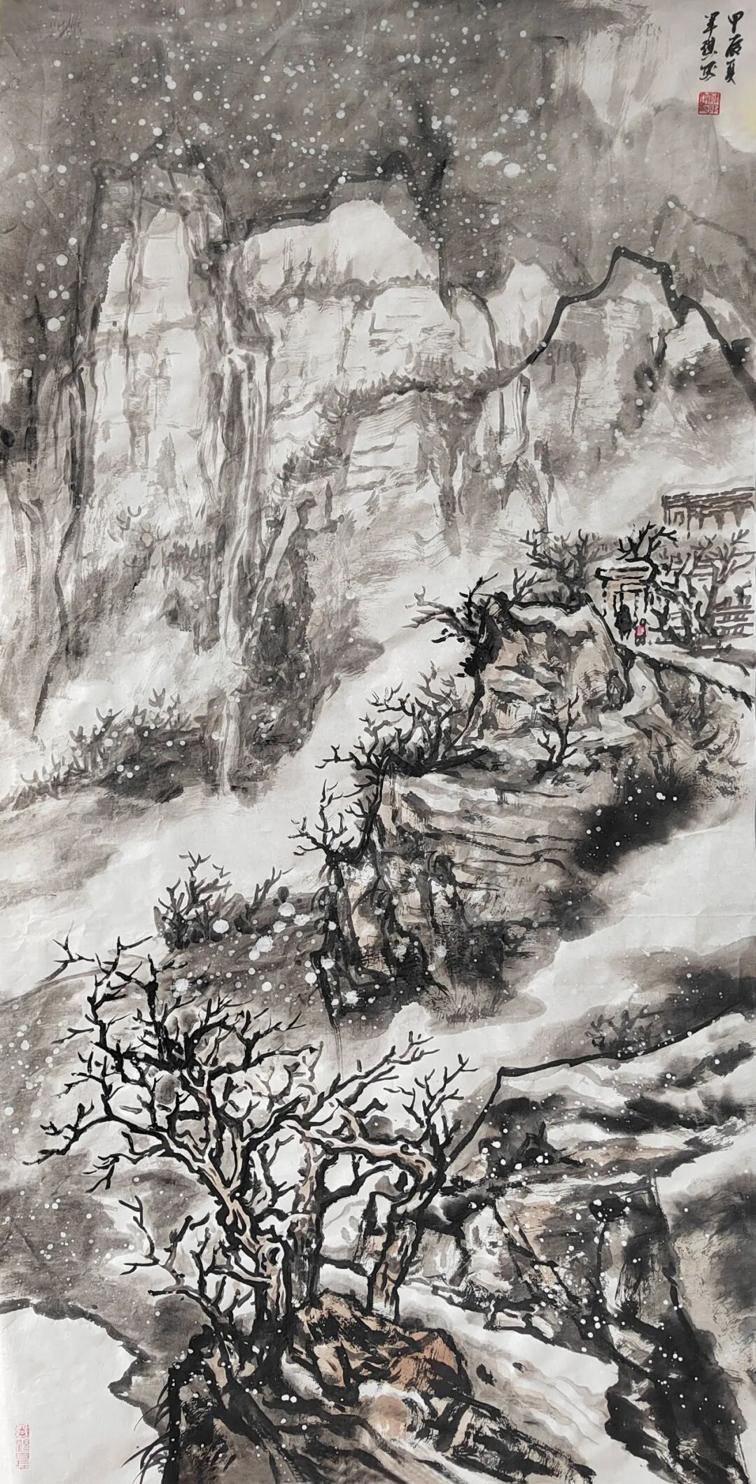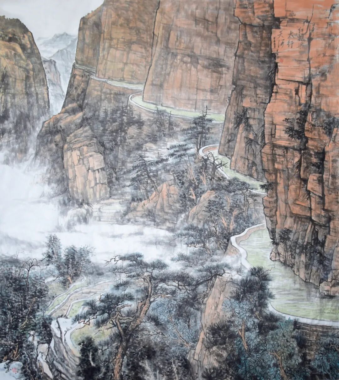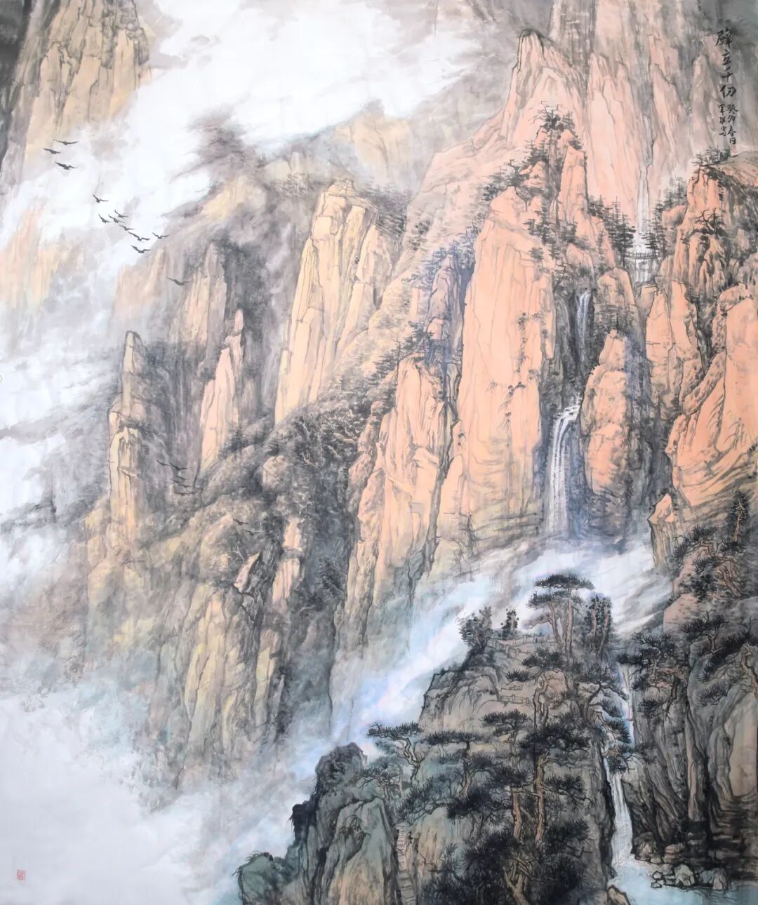 山水画创作中,融合了北宗山水的雄奇与南派山水的流丽,有师于古法的传承脉络,又不失借古开今的自家体貌。