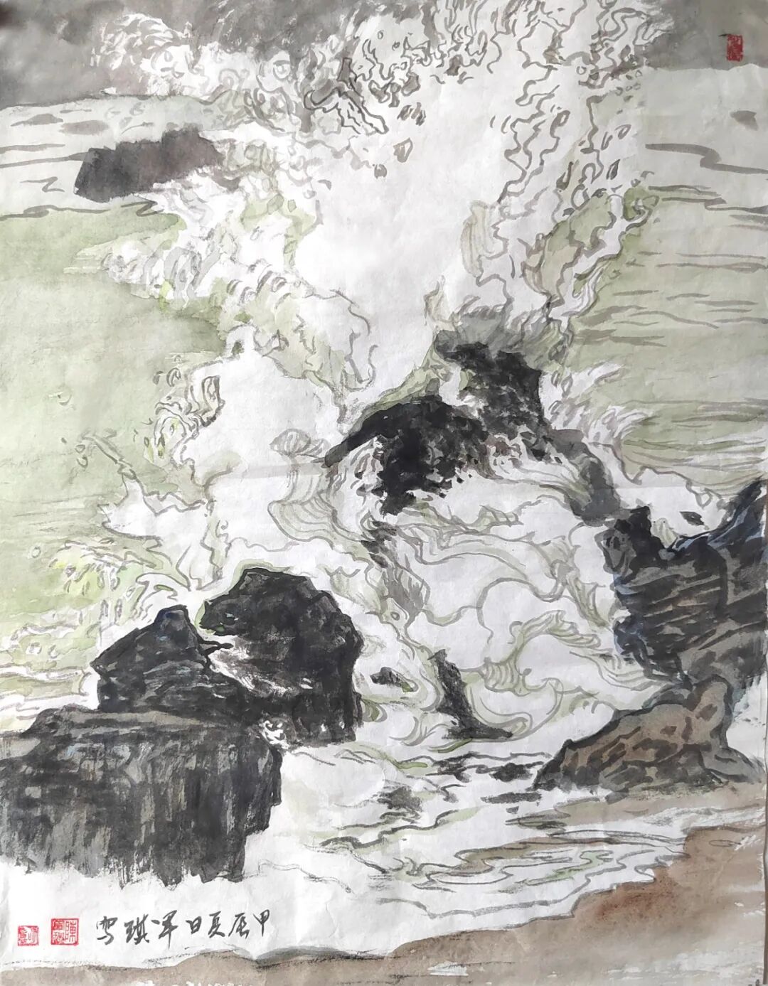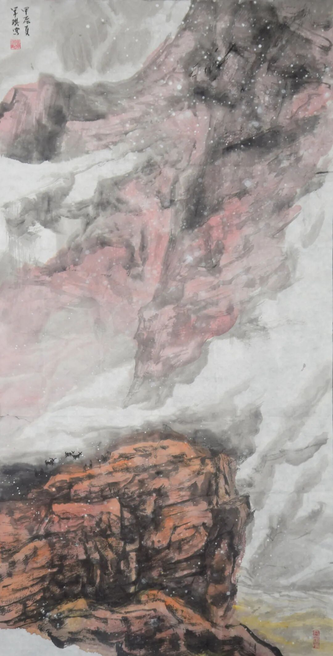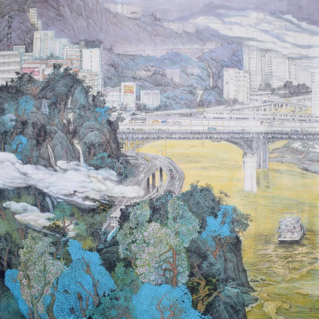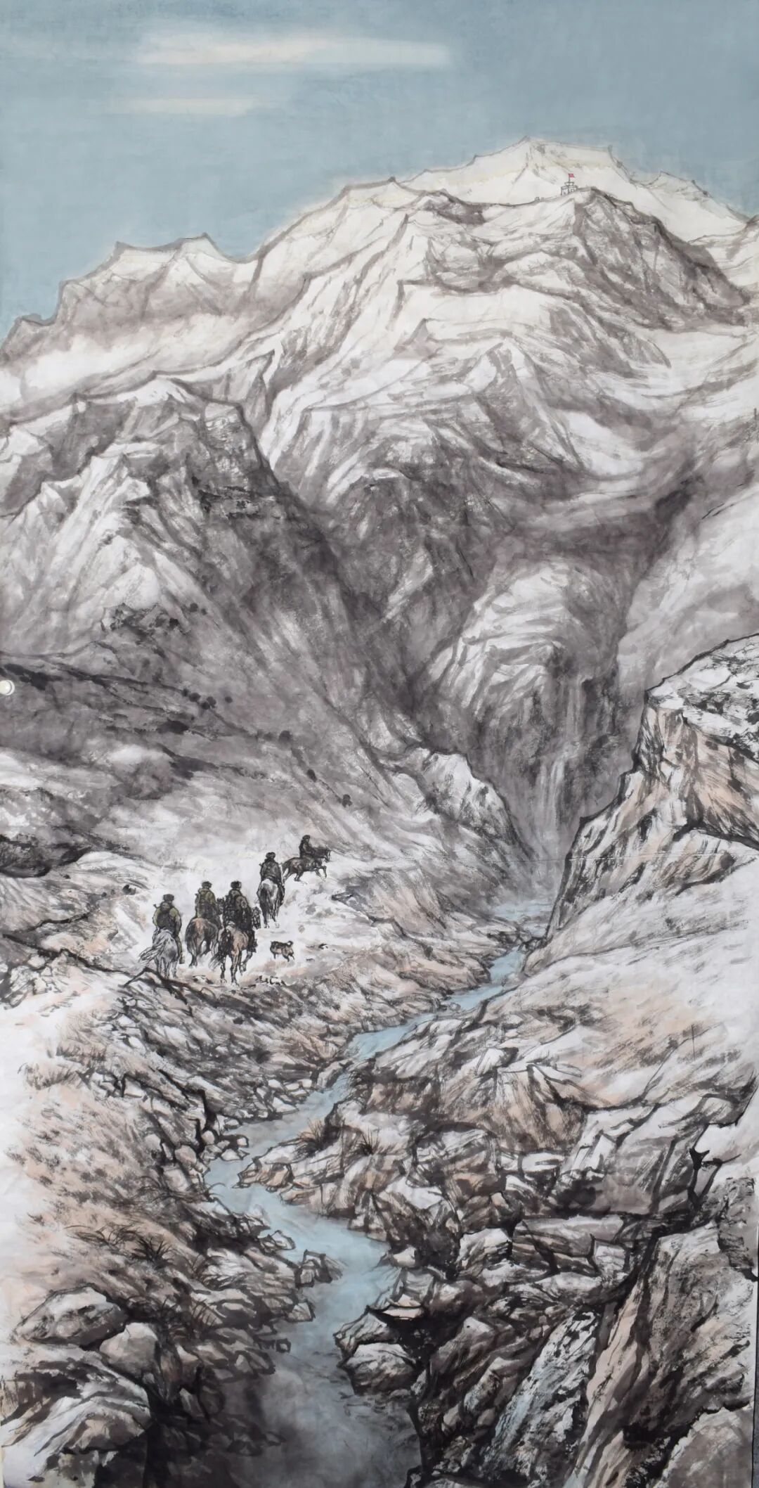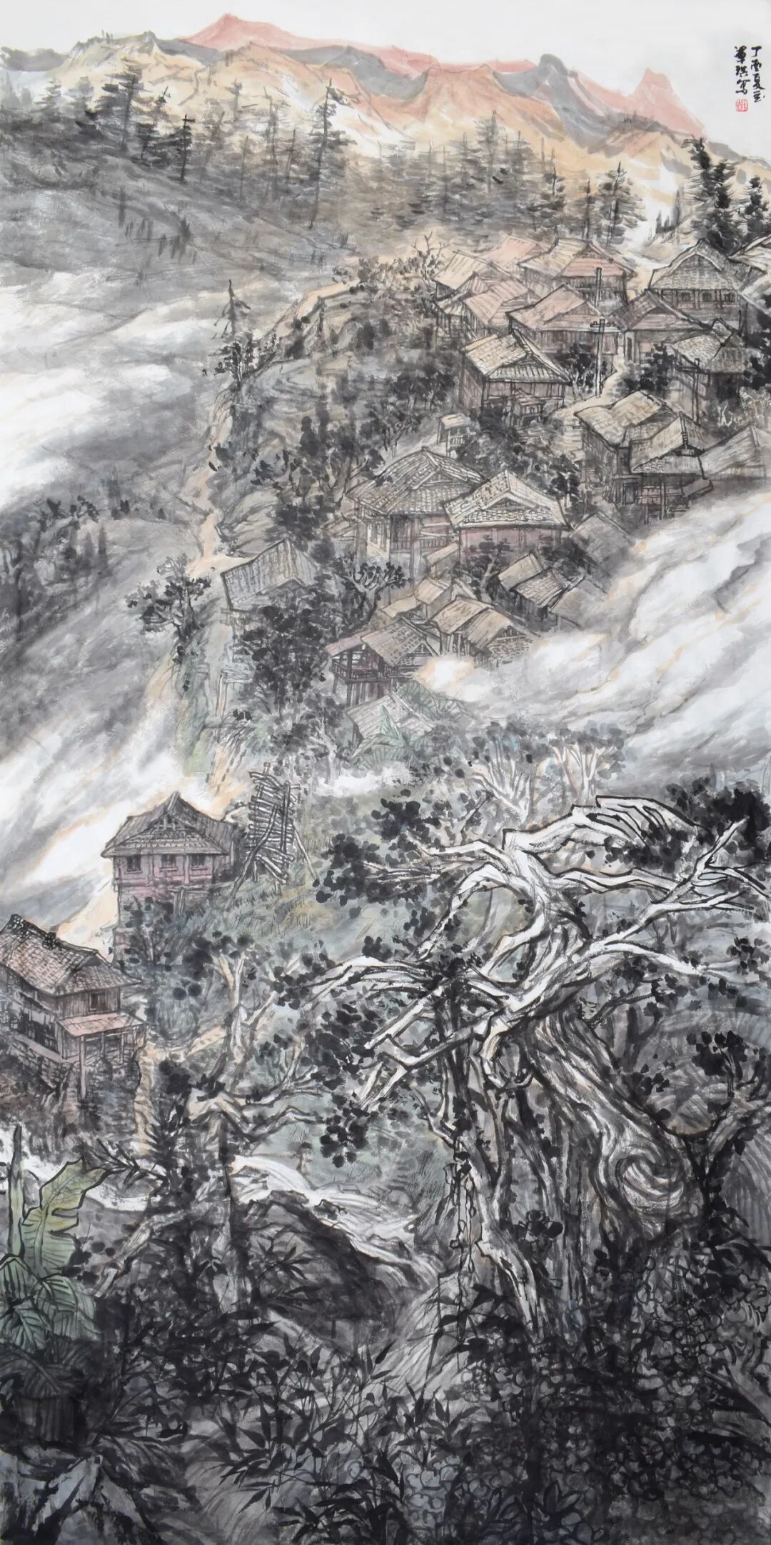 山水画创作中,融合了北宗山水的雄奇与南派山水的流丽,有师于古法的传承脉络,又不失借古开今的自家体貌。