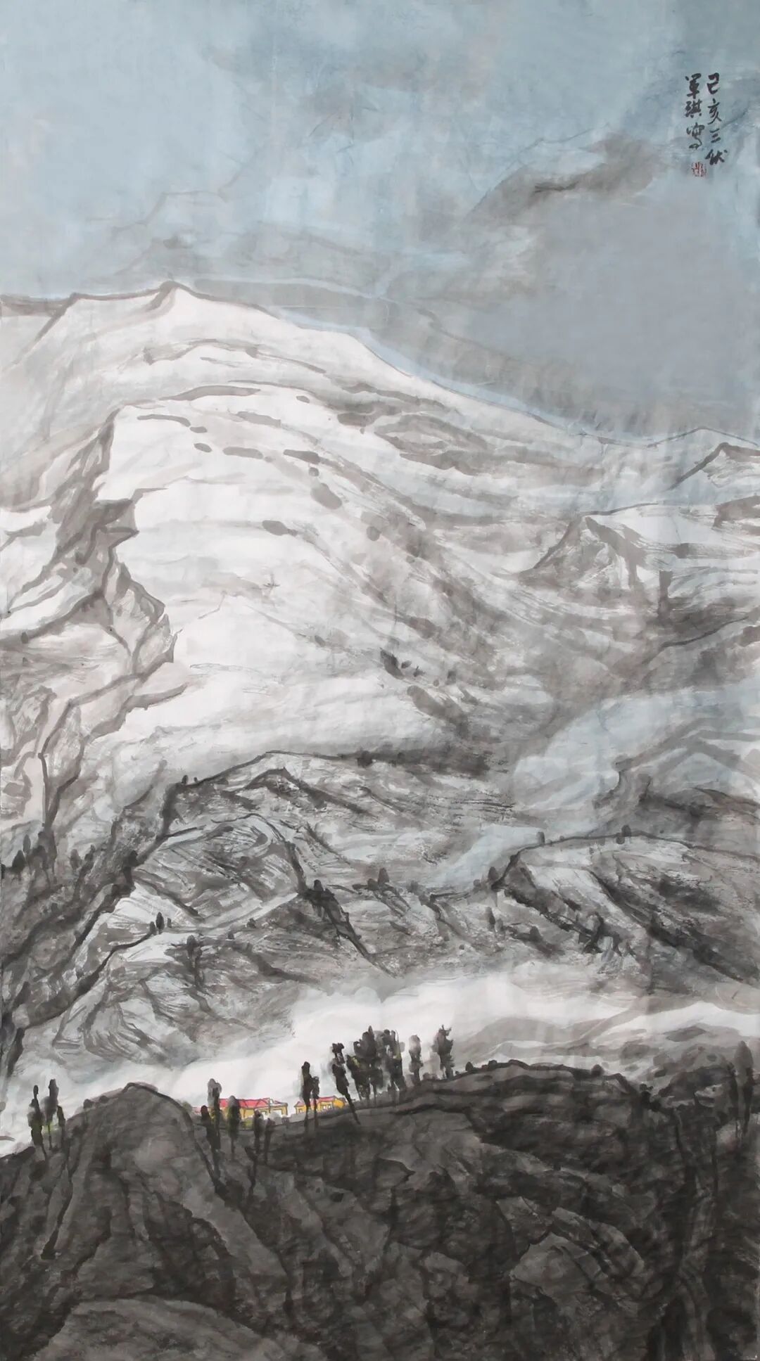 陈军琪先生的山水笔墨,是真正表现出了画家本色。用笔骨力洞达而皴法多变,墨色浑穆苍厚而又浓淡分明。,而这般笔墨造诣,也正是对应了前人钱香树所言:“用笔须重,重则厚而古”。笔墨如此,山水之观自然高古奇雄,不作小家碧玉之感,独尚天地茫茫、山水苍然之境,所以看其画作,正如观其心源外化,是画出了山水的磅礴本真,也是画出了自我心中的雄魂毅魄!