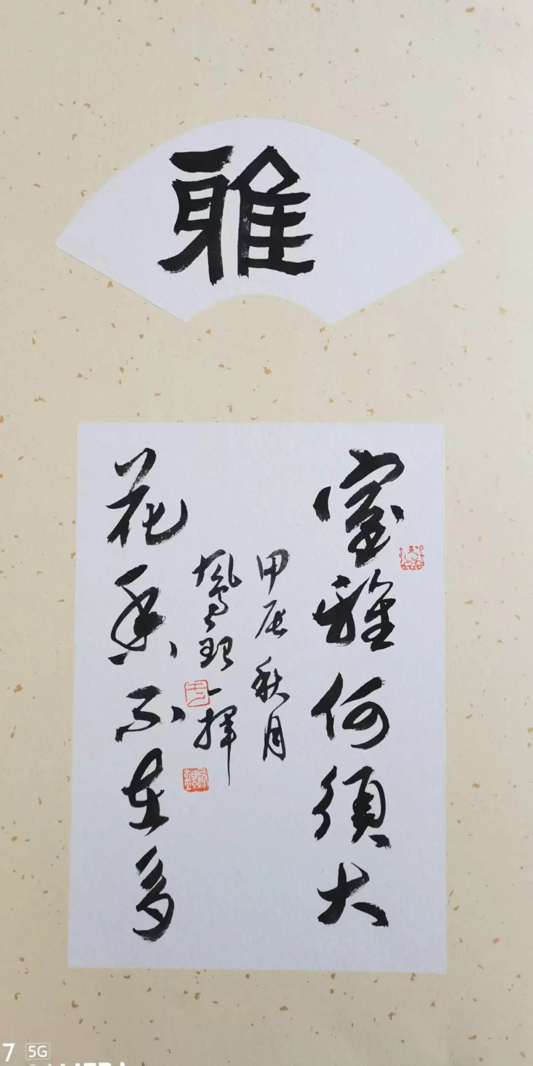 其书法风格独具魅力,北疆生长于草原,受草原罡风磨砺,笔下自有一股雄浑之气。笔力雄健,运笔时如蛟龙走、灵蛇舞,气势磅礴。作品呈现出苍劲拙朴之态,刚中藏柔,线条流畅自然,似行云流水,恰如他率真豁达的天性。于书体之上,他兼善行书、草书、楷书、隶书,无论是软笔之韵,还是硬笔之刚,皆能信手拈来,驾驭自如。为求书法精进,他遍访古人踪迹,深入研习二王的潇洒飘逸、颜苏的雄浑大气,临摹米赵的灵动精巧,苦心孤诣,力求探寻书法真髓。同时,他还师法自然,摹刻那达里诺尔、那西拉沐伦河的灵动之姿,将天地之灵气融入笔端。