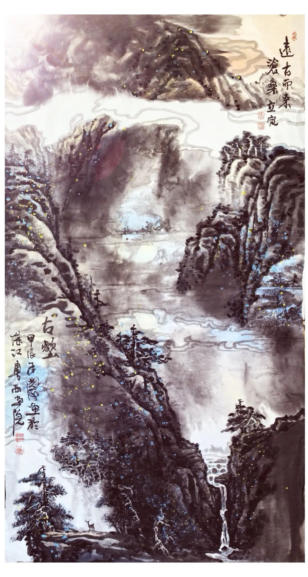 其次,“玄”是道家哲学中一个重要的概念,它代表着一种深奥、神秘的境界。玄墨的运用,正是对这种境界的艺术诠释。墨色的深沉和变化,象征着道的无形与无象,却又无所不在。画家通过玄墨的渲染,在画作中先是开创一个初始,营造出一种天地空灵、深远的画面意境,在艺术创作的过程中,能够感受到一种超越形象的精神力量,仿佛进入了道家所追求的那种“玄之又玄”的境地,深奥神妙。这是洞察宇宙间一切奥妙变化的门径。