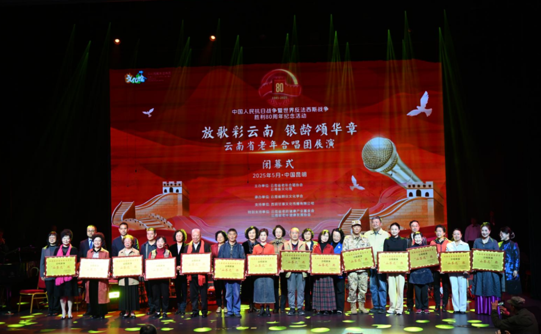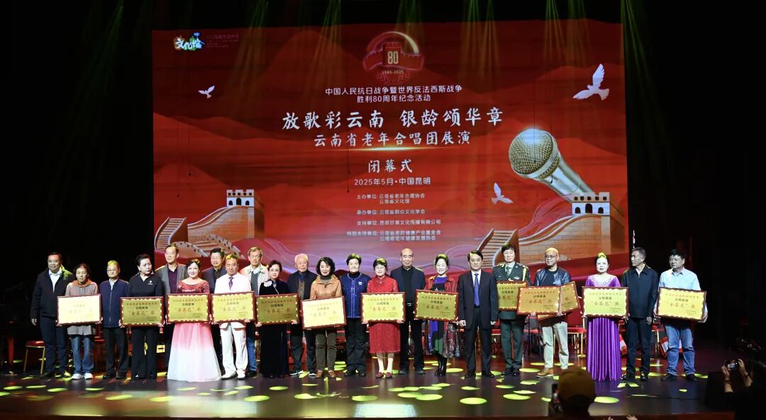 5月29日,中国人民抗日战争暨世界反法西斯战争胜利80周年——2025“放歌彩云南 银龄颂华章”云南省老年合唱展演活动闭幕式暨颁奖典礼,在云南省文化馆艺术客厅圆满举行。活动由云南省老年合唱协会、云南省文化馆主办,云南省群众文化学会承办,昆明甘草文化传播有限公司支持,云南省老龄健康产业基金会、云南省老年健康发展协会特别支持,为全省老年合唱爱好者提供一个展示风采的舞台。