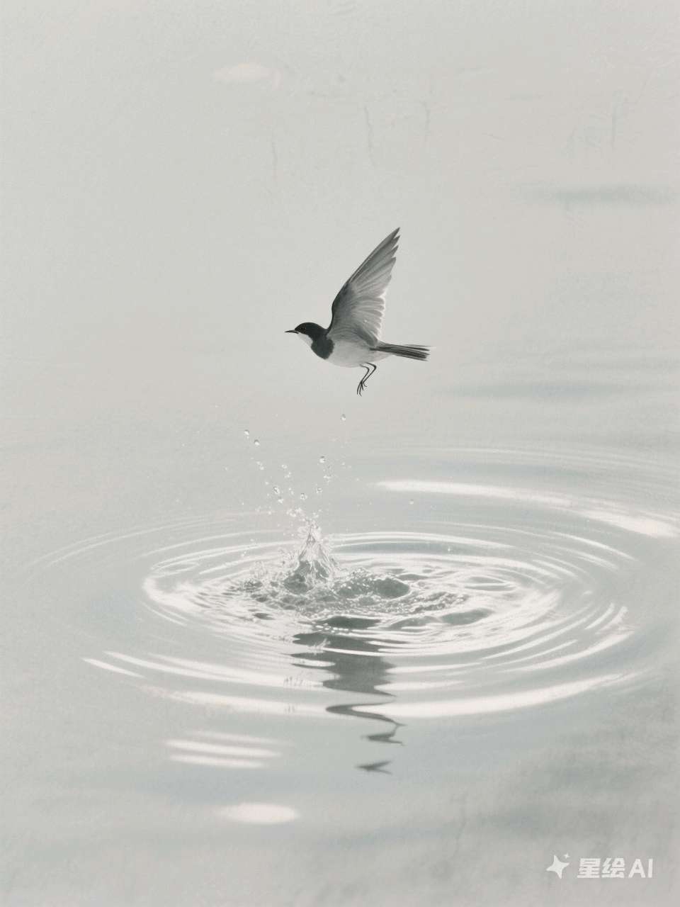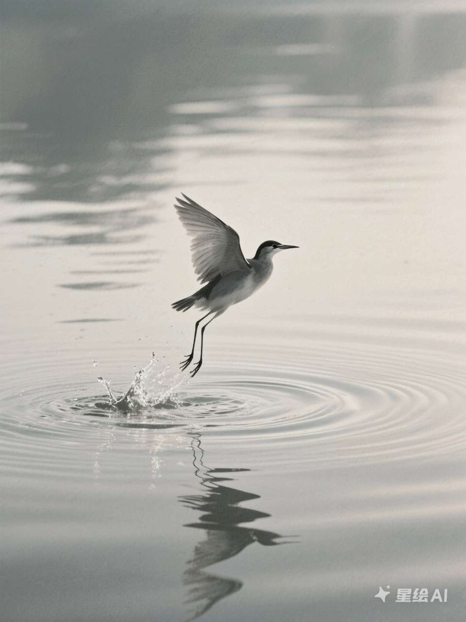 水光潋滟处,孤影独自盘旋