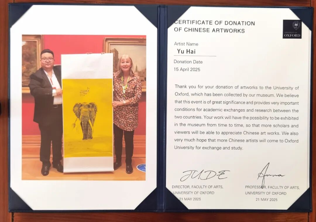 您捐赠的作品将于2025年4月17日被剑桥大学艺术学院收藏。我们感受到了中国艺术家的热忱与担当,剑桥大学视此次捐赠为重要里程碑,您的作品将为剑桥大学研究和学习中国艺术文化提供有力支持。我们非常感谢中国艺术家,也欢迎您常来剑桥交流学习。