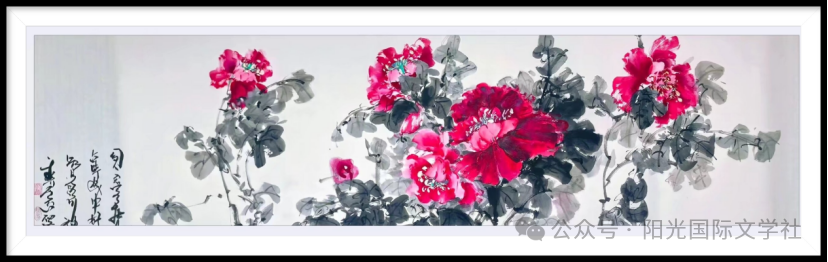 这幅画描绘了牡丹花的盛开景象,色彩斑斓,繁花似锦,象征生命的活力和美好的未来。