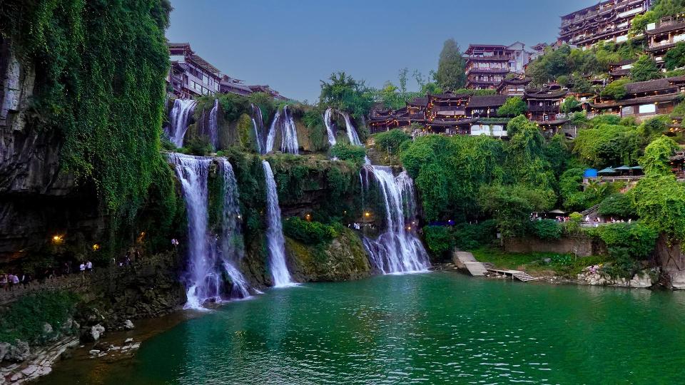 湘西自然与人文交融的象征·千年芙蓉古镇壮观的大瀑布