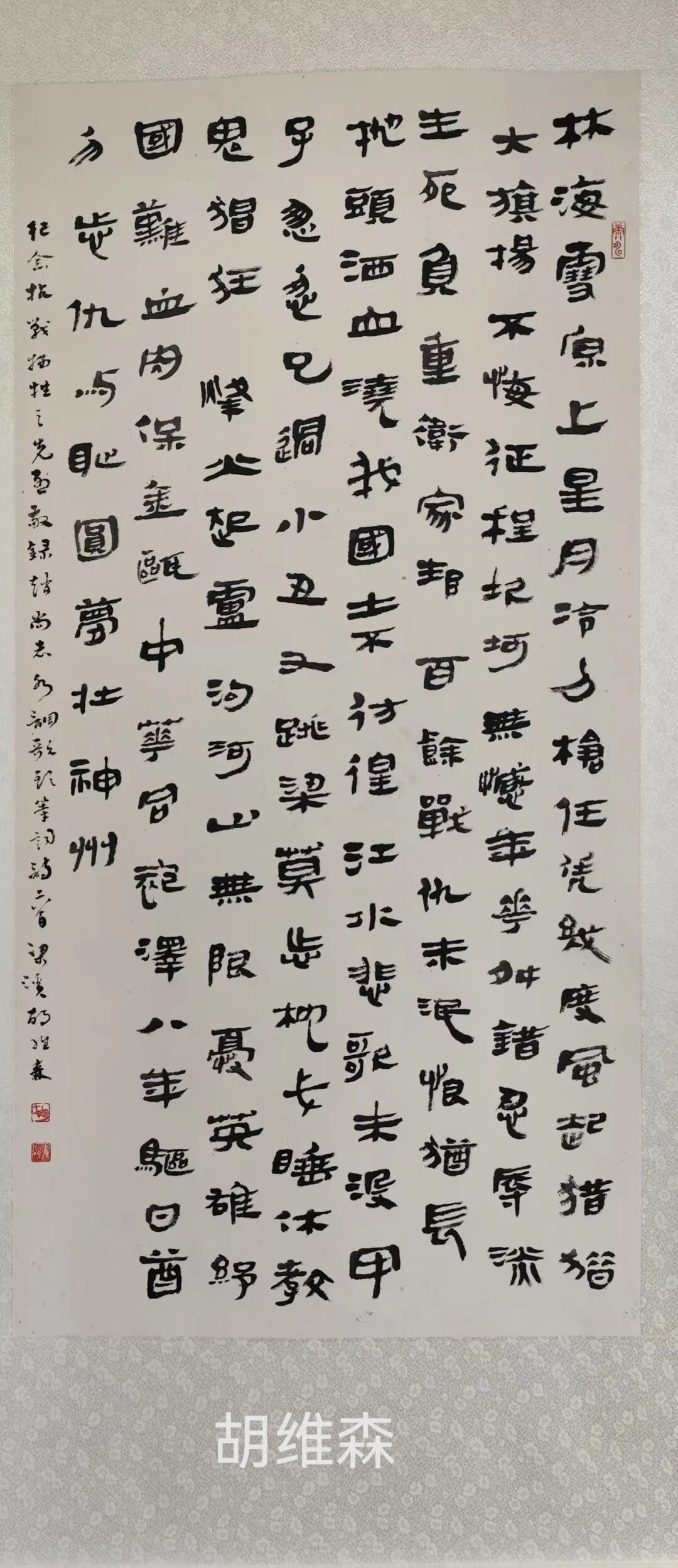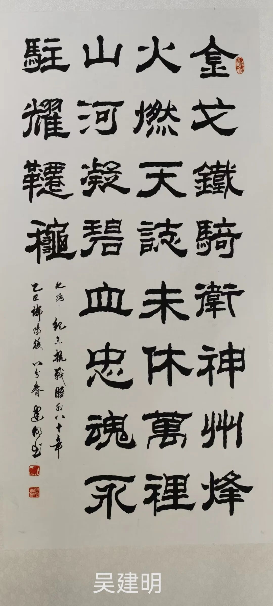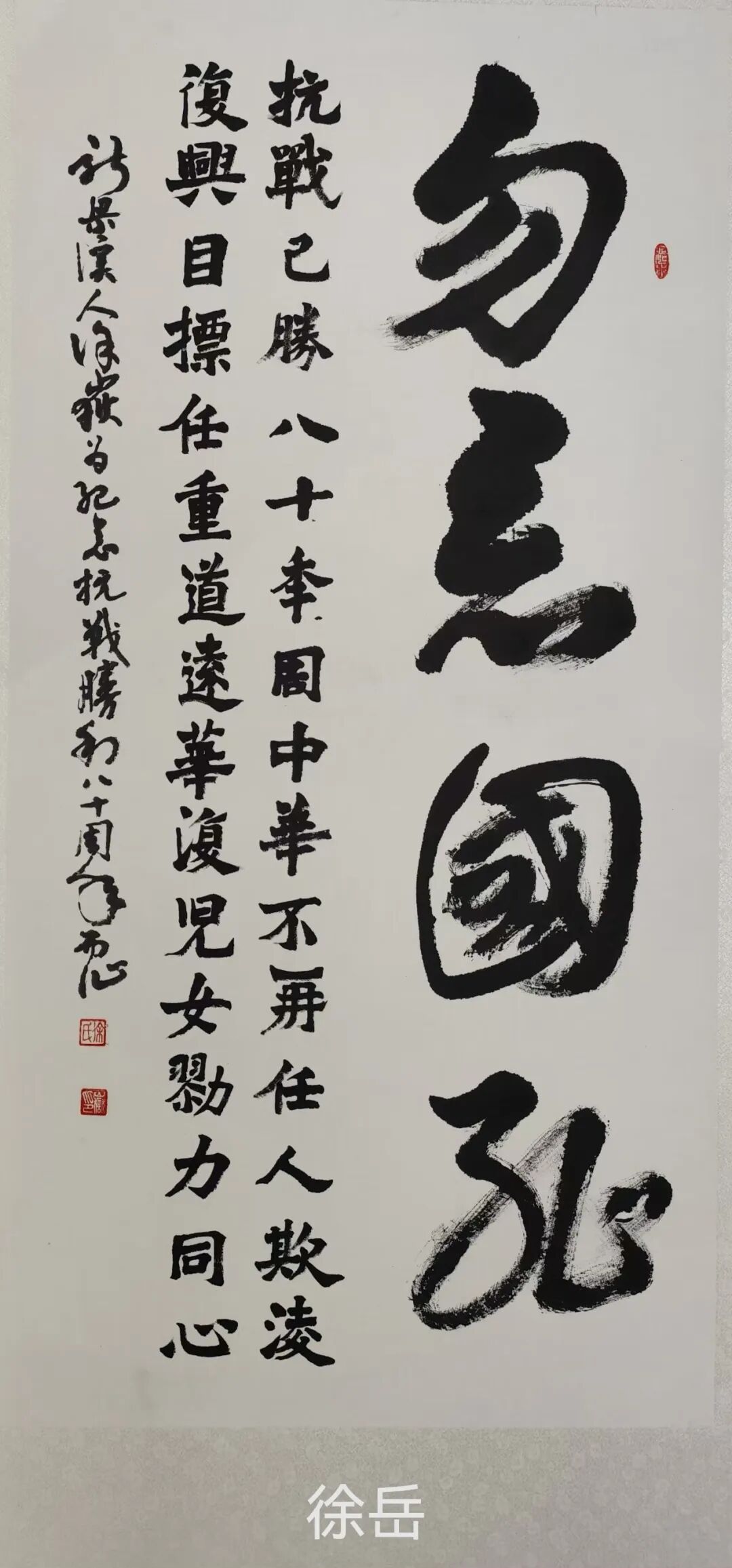 笔墨当随时代,丹青可鉴丹心。参展的仲跻实、徐岳、吴建明、杨学善、巢卫红、华加、屠一清、许泳、蔡玲、谢义勇、孟宪仁、胡维森、孙辉、冯以年、宗浩、徐斌云、吴国亚、周培元、尹惠新、王仁泉、高培根、陆建红、刘卫、王丽娟、王萍华、平文鼎、于陆等诸位书画家,或挥毫书录抗战诗词,字字铿锵,再现救亡图存的呐喊;或泼墨描绘山河壮景,笔笔深情,寄托对家国安宁的珍视。他们以书画为媒,将历史的厚重、民族的坚韧与时代的奋进熔铸于笔墨之间,让观者在艺术熏陶中回望峥嵘岁月,在丹青光影中感悟家国情怀。