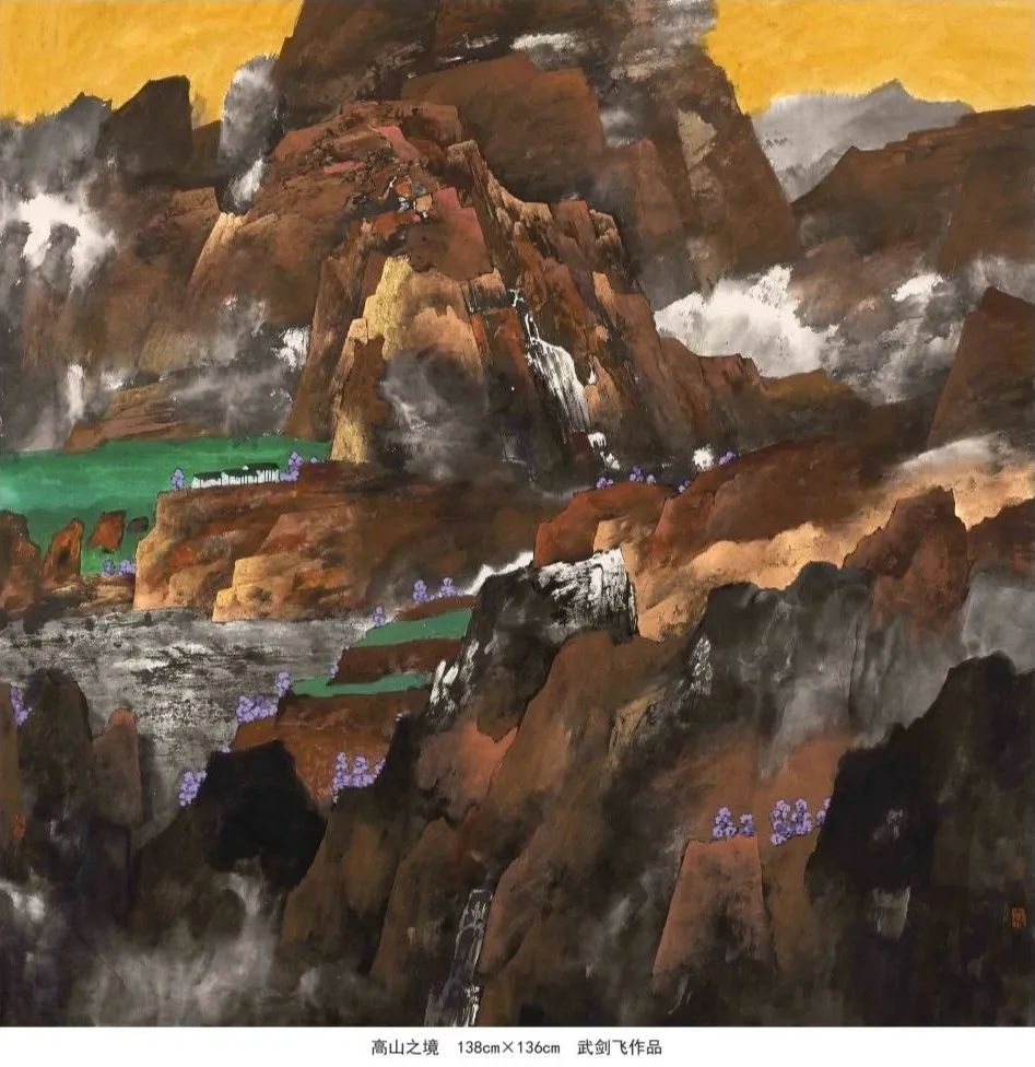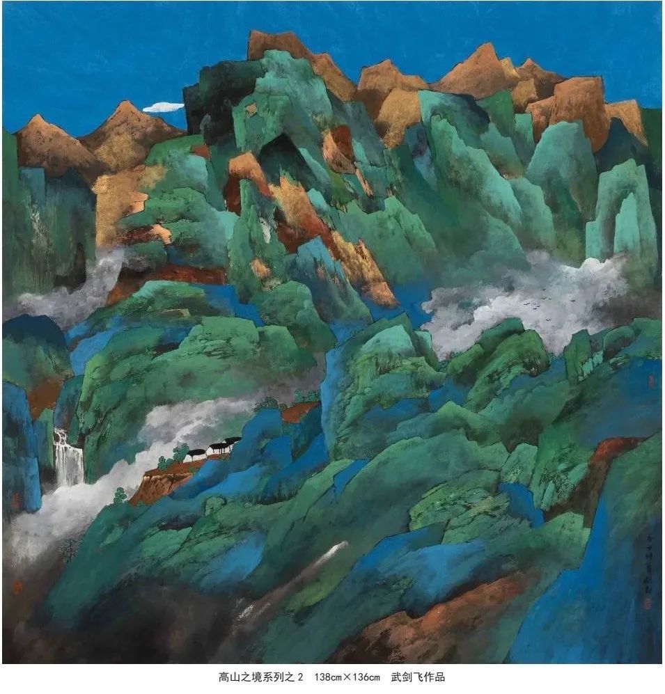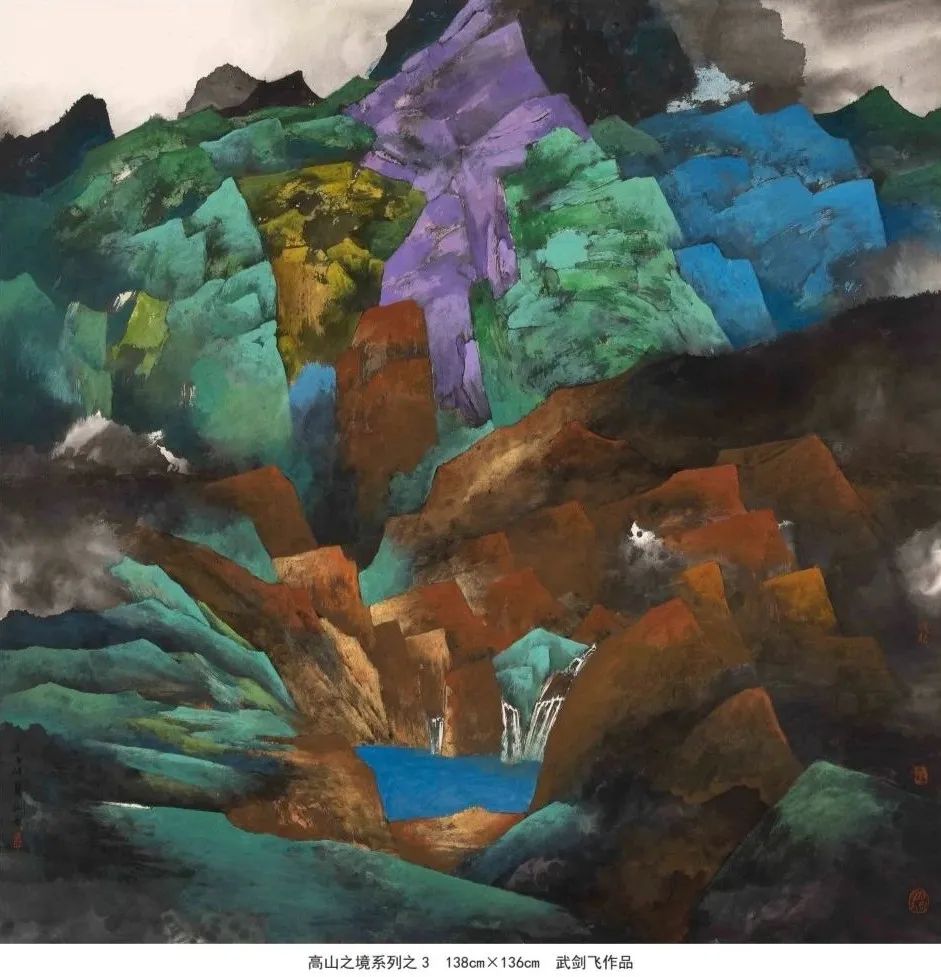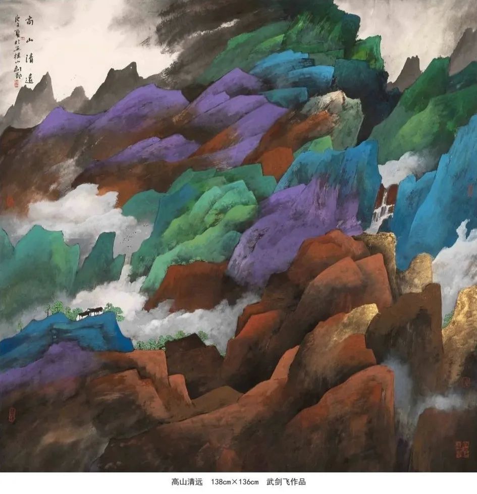 武剑飞先生是我国当代著名的写意重彩画家,他在近四十余年对中国重彩画不断的研究与整合中,吸收了视觉艺术观念,保留了中国画笔墨传统的写意性,开创了中国画“积彩法”的现代中国绘画理论和中国“写意重彩”画法。重点系统的将中国水墨写意画与重彩画进行有机的融合,产生了一种崭新独特的新中国画面貌,受到中外各界关注。九十年代,他是第一个提出把“中国重彩画”作为国家文化形象的艺术家,并将中国重彩艺术推向世界画坛。