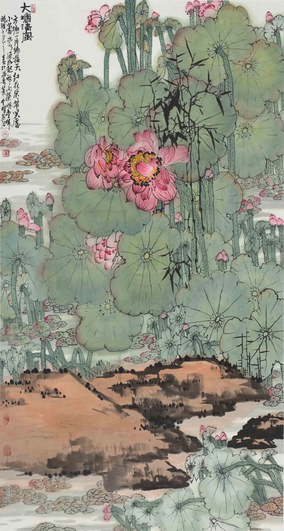 在中国书画理论中,“气象”就是强调作品具有一种雄浑气盈的整体格局,一种将万物汇纳一体的势态。我认为,朱全增的花鸟画就具有这样一种格局,势态和气象。从客观方面看,乃包融万象,聚物成形,呈全景之笼罩。花鸟画虽为天地万物中的局部之物,但却能小中见大,由微观而扩展为宏观。从主观方面讲,这种万象皆备的格局,毕竟需要画家全力以赴,将笔,墨,色,造型和构图诸种艺术因素统摄起来,与客观世界交流相应,互照而合,方能最终实现。若无大胸襟,备大气魄,具大手笔,是绝难胜任的,也是绝难表现出花鸟画之大“气象”的。