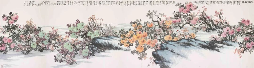 如今正值百年难遇的“新冠”流行,但我们从朱全增先生的作品中没有看到丝毫的疫情阴影,相反,他的作品,磅礴大气,万紫千红,一派生机,扫祛病毒阴霾,给人们带来了生的希望和美的祝福!