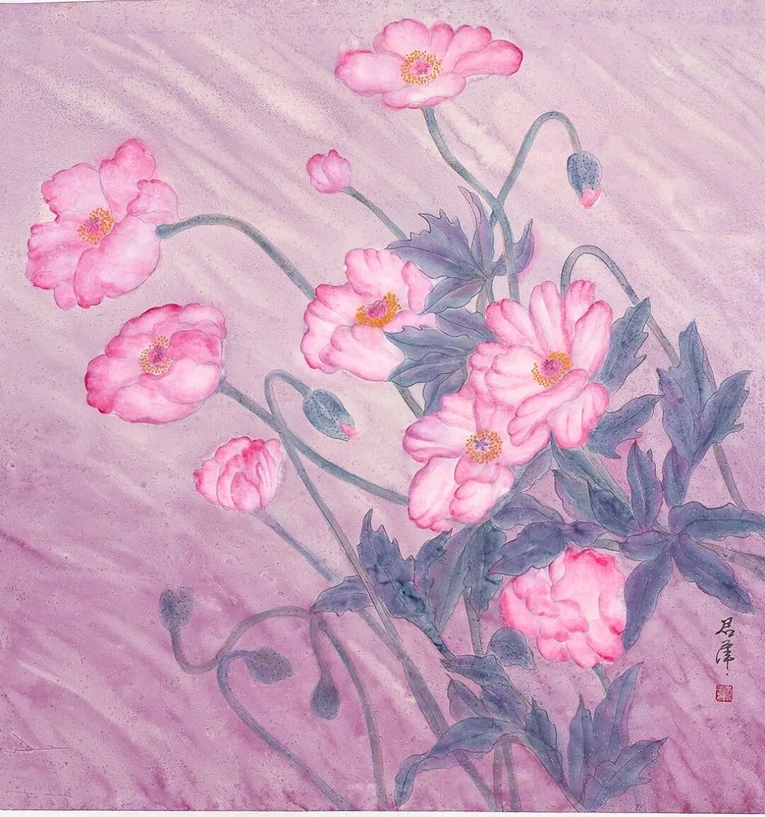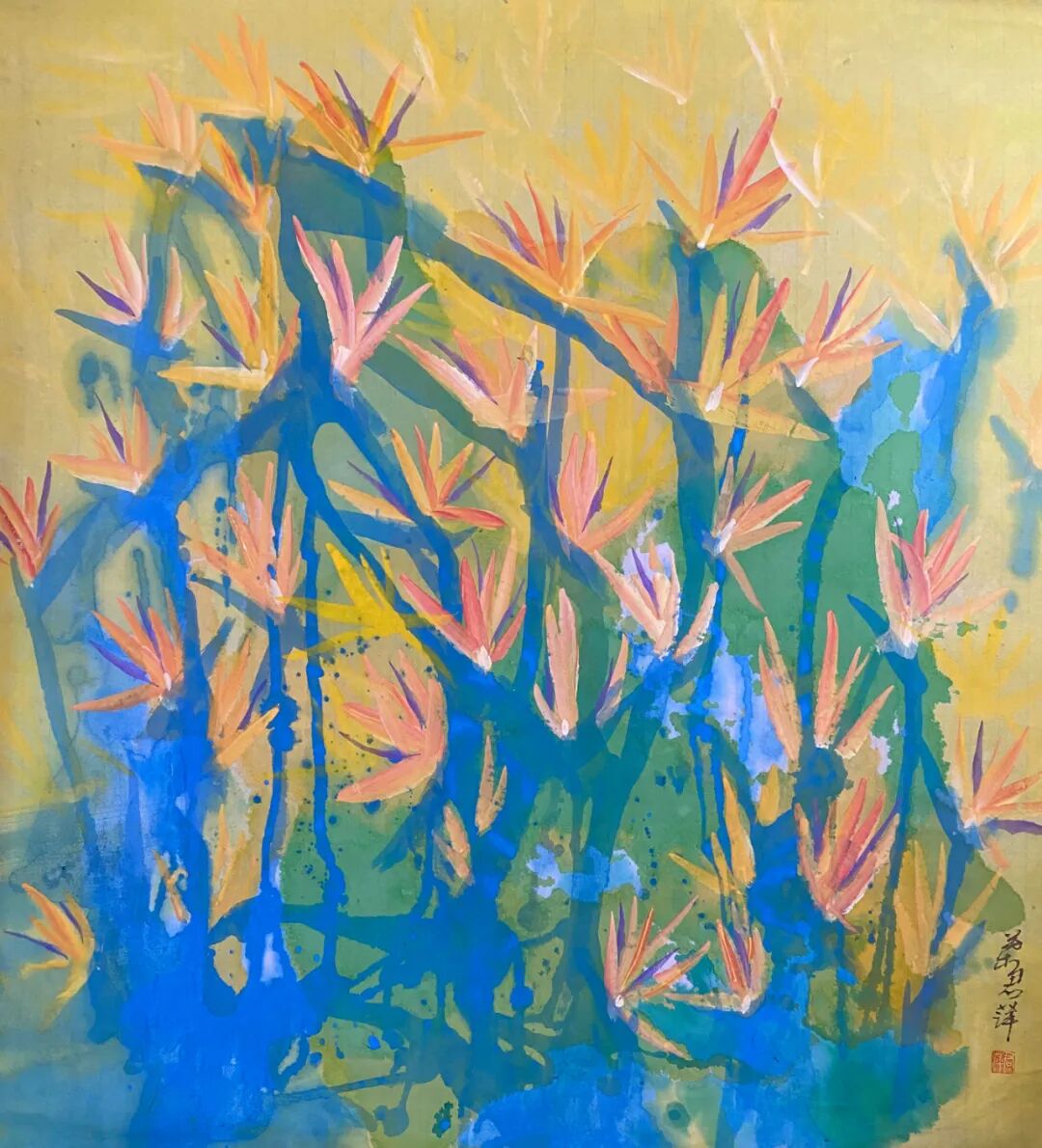 叶君萍的写意作品不论是国色天香的牡丹,还是不计名传的小花小草,具有女人的特有温馨,又有铁骨铮铮的超人强力和意志,都给以动人的表情。“我为花鸟写照,花鸟为我传情〞也。