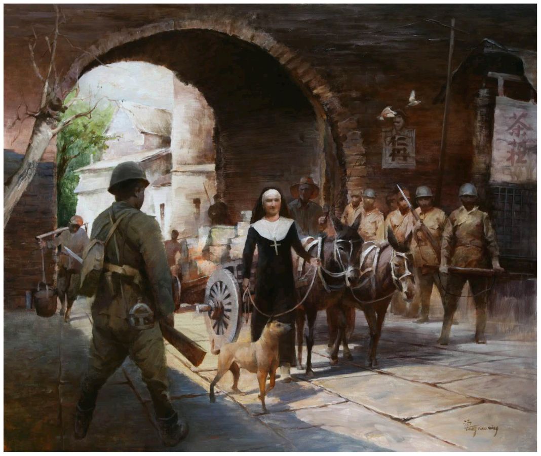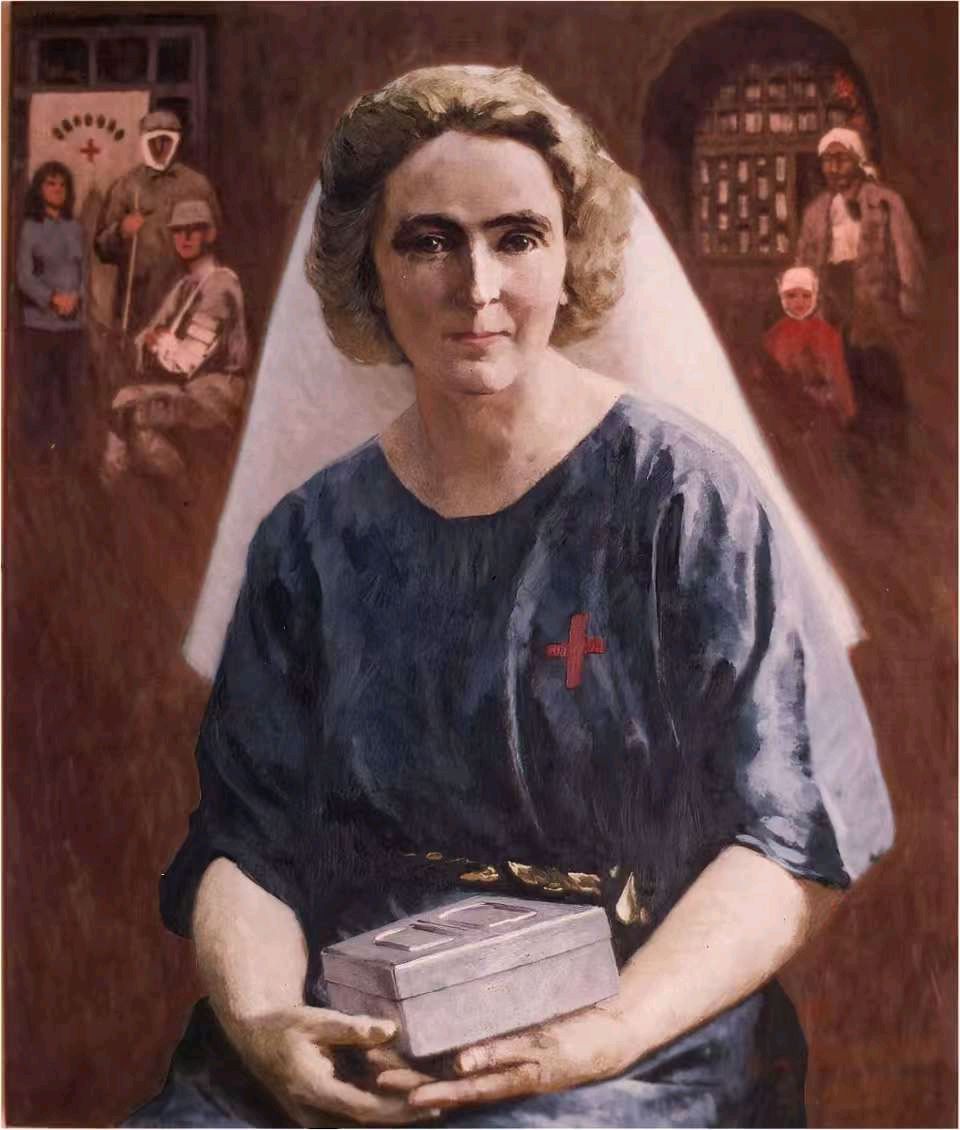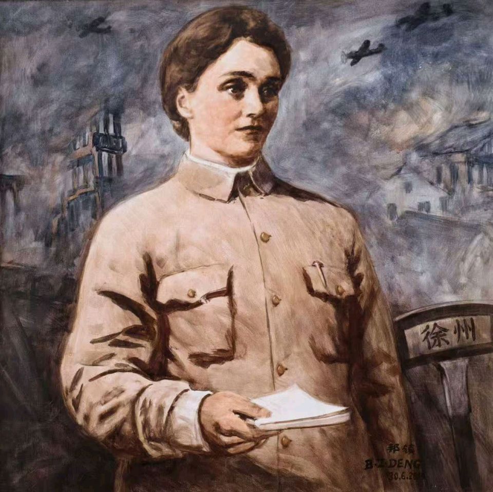 《支援中国抗日的新西兰女护士凯瑟琳.霍尔》油画,100cmx80cm,邓邦镇作