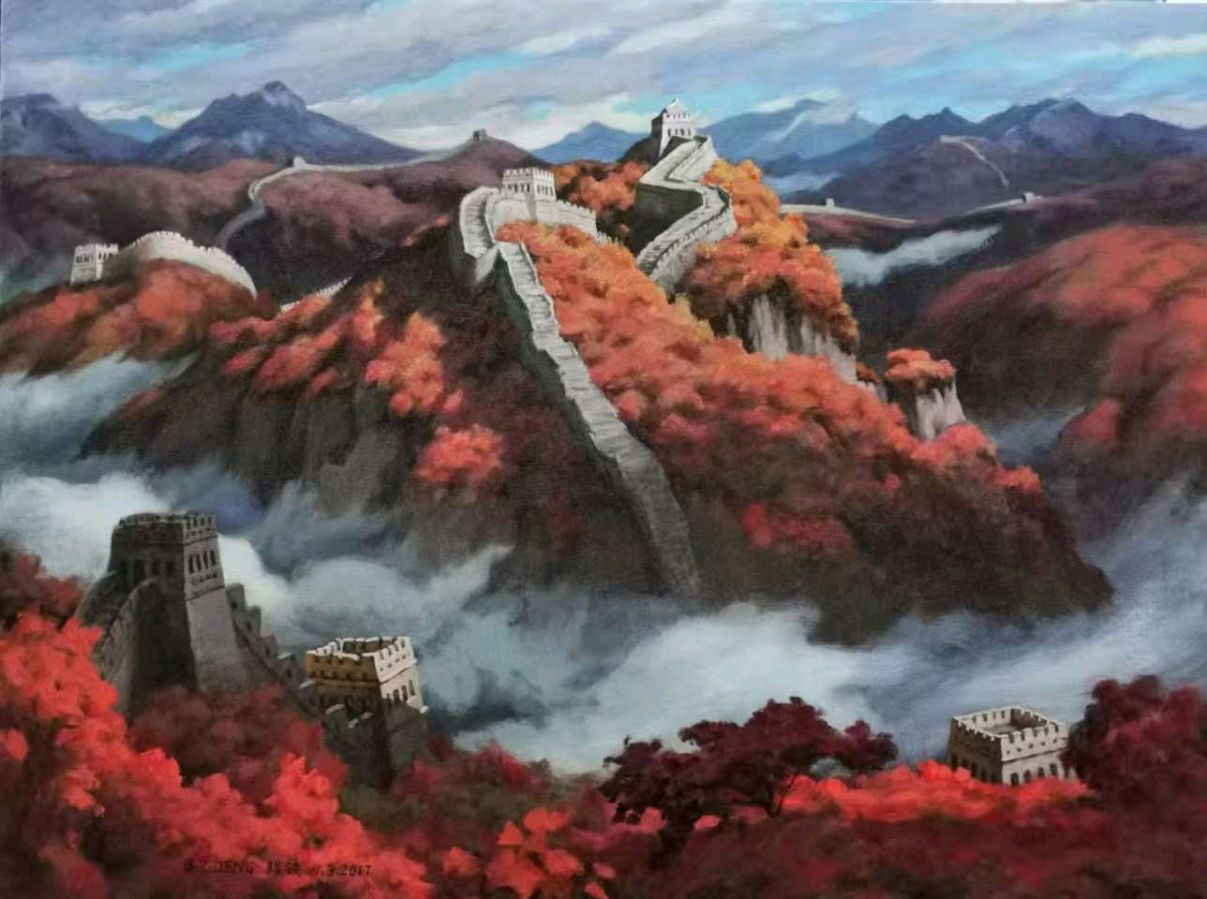 《太行山抗日老区》油画,120cm㐅120cm,邓邦镇作