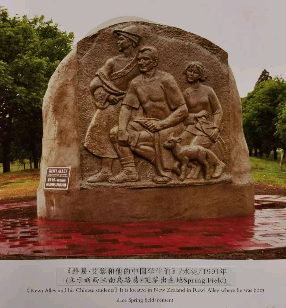 《路易.艾黎和他的中国学生们》水泥雕塑,350cm高,立於斯普林菲尔德,卢波作