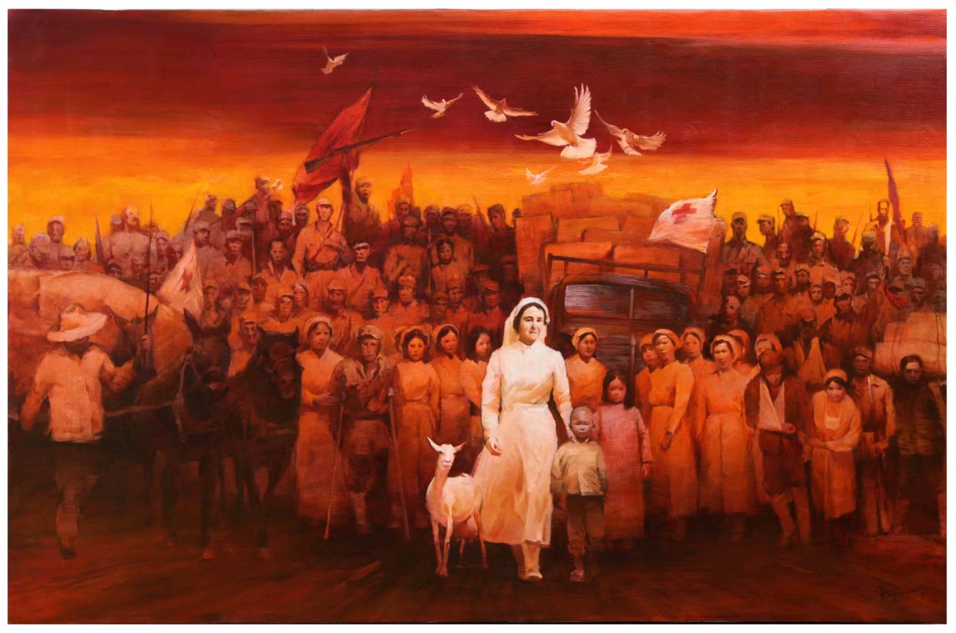 《国际主义战士 和平天使 ——凯瑟琳·霍尔》油画190x130xm