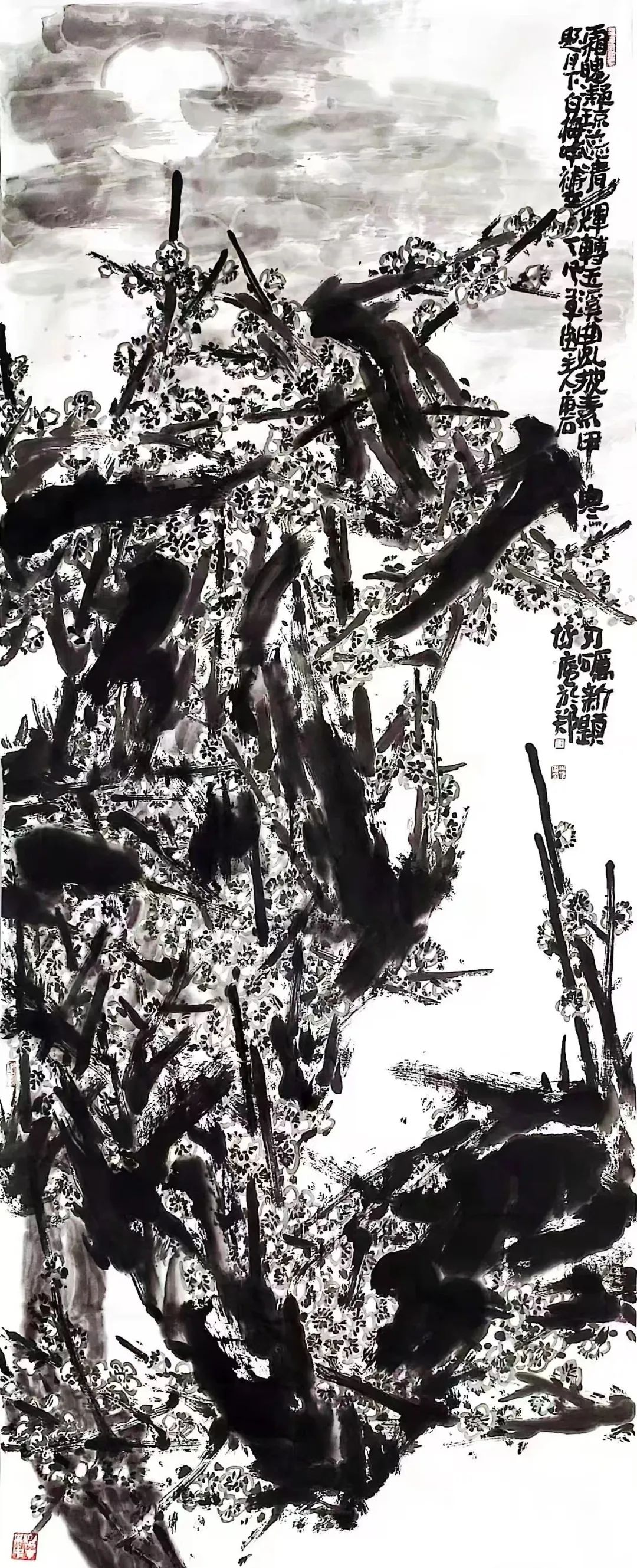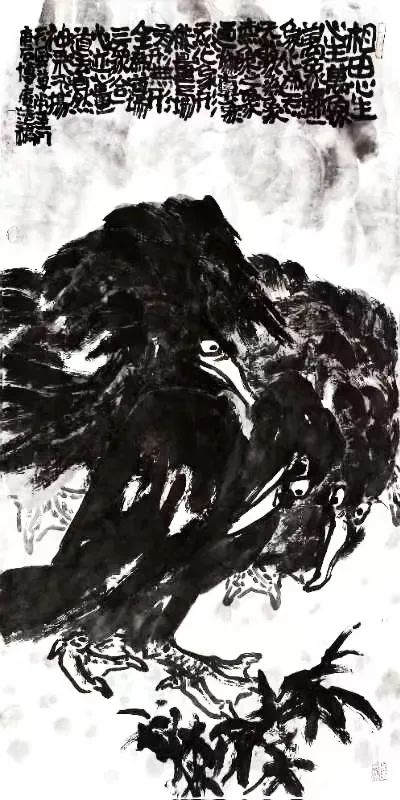 当轻逸美学风行时,他以《旱塬铁枝》中龟裂墨痕、《抗霜图》里磐石般的墨鹊,宣告艺术应承载土地真实的苦难与坚韧。如黄河滩区抗洪石堰般的存在,成为民族精神的不屈映像。