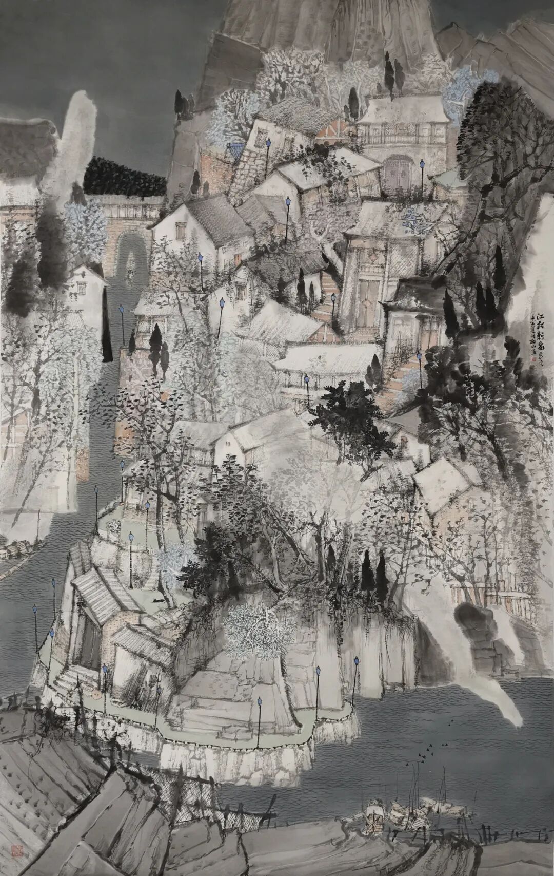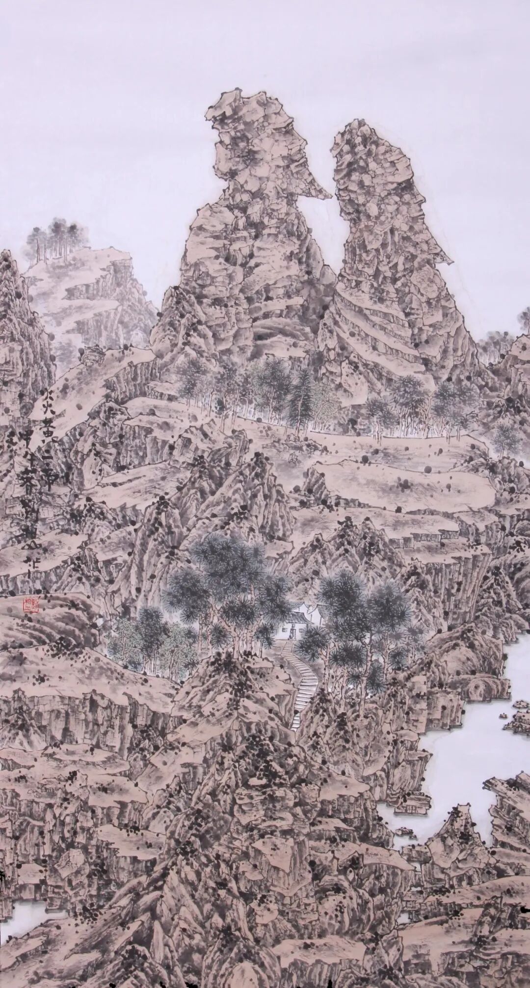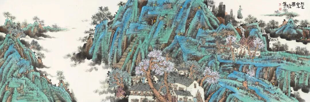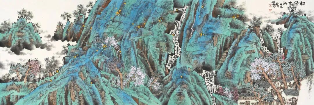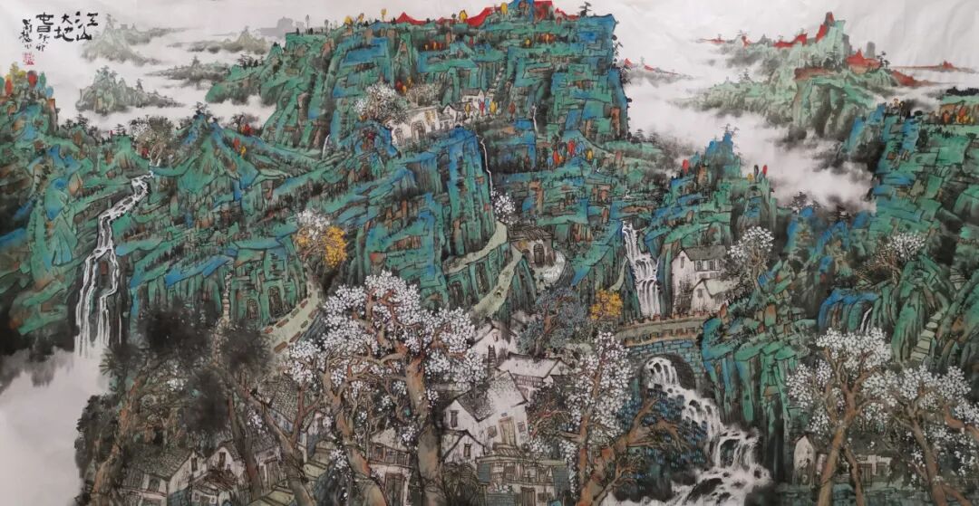 2022年,中国画山水作品《江村新象》入选中国美术家协会主办的2022“江山如此多娇”中国山水画作品展览。