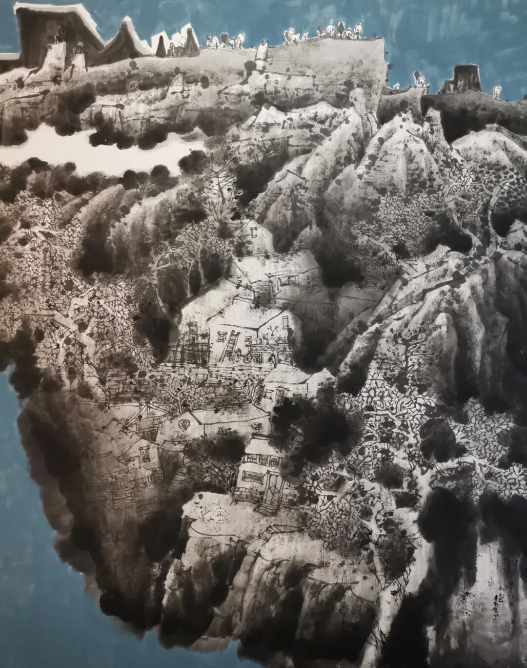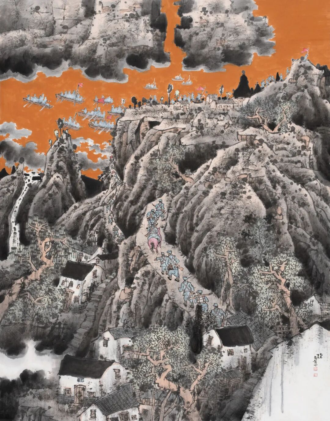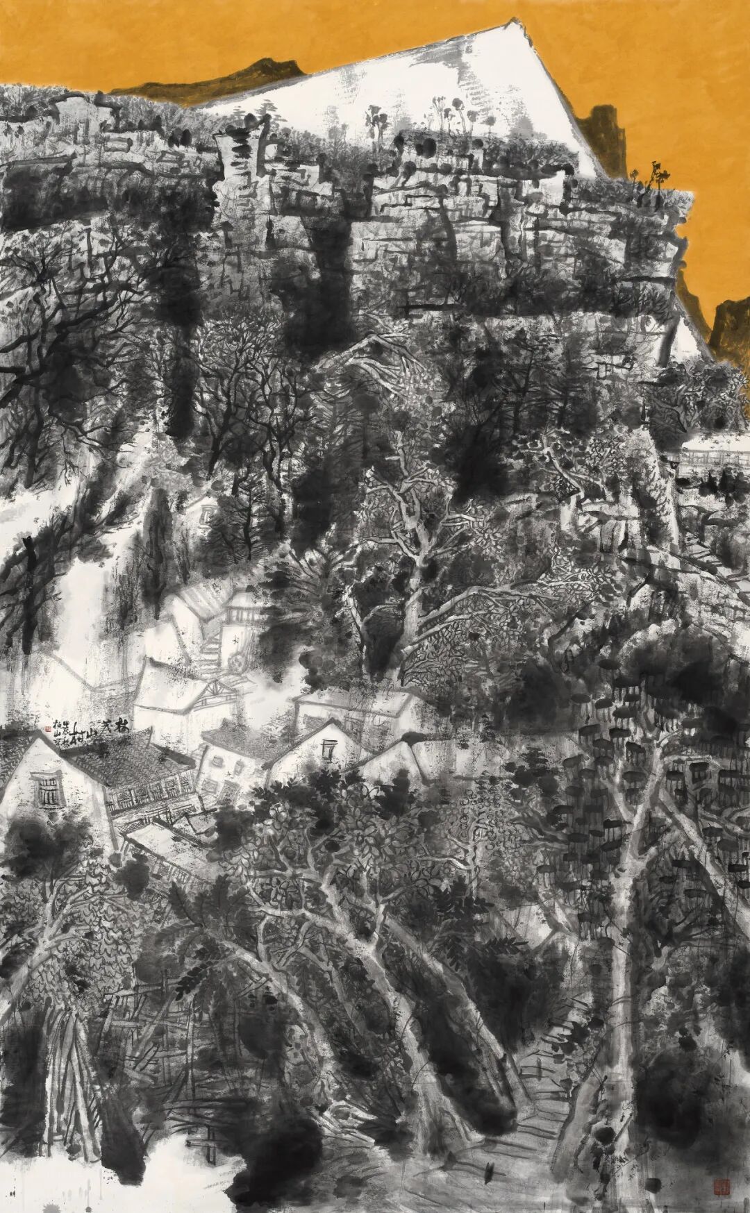 2022年,中国画山水作品《江村新象》入选中国美术家协会主办的2022“江山如此多娇”中国山水画作品展览。