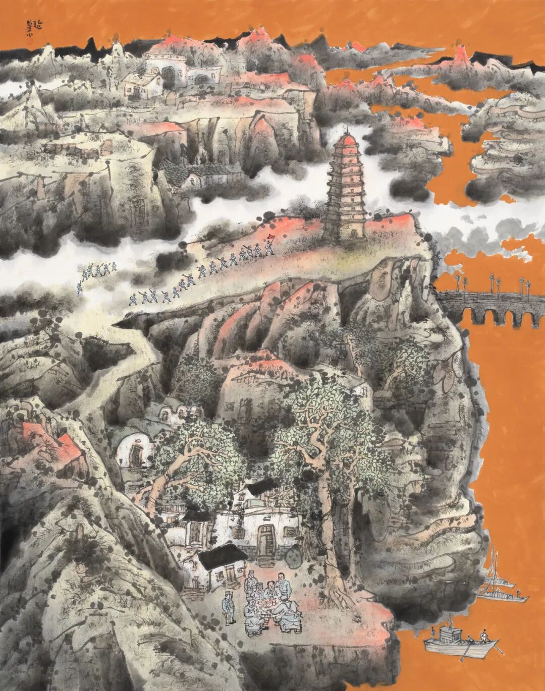 八十年岁月,山河巨变;八十年浩气,薪火相传。2025年,是中国人民抗日战争暨世界反法西斯战争胜利八十周年。为了铭记那段浴火重生的民族记忆,缅怀以血肉筑起新的长城的先烈,我们以“自强精神”为主题,特邀全国80位书画名家,以丹青写史、以翰墨铸魂,举办本次画展。自强,是中华民族在十四年烽火中淬火而生的精神利刃。大江南北,长城内外,无数仁人志士以“天下兴亡、匹夫有责”的担当,以“捐躯赴国难,视死忽如归”的气概,汇聚成救亡图存的滚滚洪流。正是这股自强不息、百折不挠的精神力量,使山河重光,使民族复兴。今天,当战争的硝烟早已散去,我们依然需要回望那段苦难与辉煌交织的岁月——不是为了延续仇恨,而是为了守护和平;不是为了沉湎回忆,而是为了汲取继续前行的力量。为此,80位书画名家以笔为旗,以墨为刃,或再现烽火硝烟里的英雄群像,或抒写山河无恙的盛世气象,或寄寓对和平的永恒祈愿。他们的作品,是历史的艺术凝练,是时代的深情回响,更是对伟大抗战精神最崇高的礼赞。