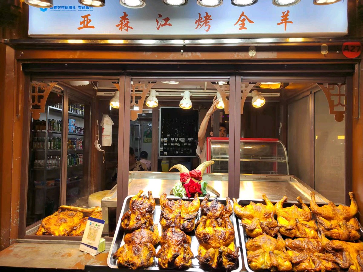 夜市深处,转过街角烤全羊的摊位总是最热闹的。整只羊被铁架撑开,在炭火上缓慢旋转,表皮渐渐变得焦黄酥脆。烤肉师傅阿合买提不时用刷子往羊身上刷秘制酱料,酱汁滴入炭火时腾起的青烟带着诱人的香气。当羊肉烤至金黄,师傅会利落地切下一块最肥美的羊尾油,递给围观的孩子们,看他们吃得满嘴流油的模样,他脸上的皱纹里都堆满了笑。