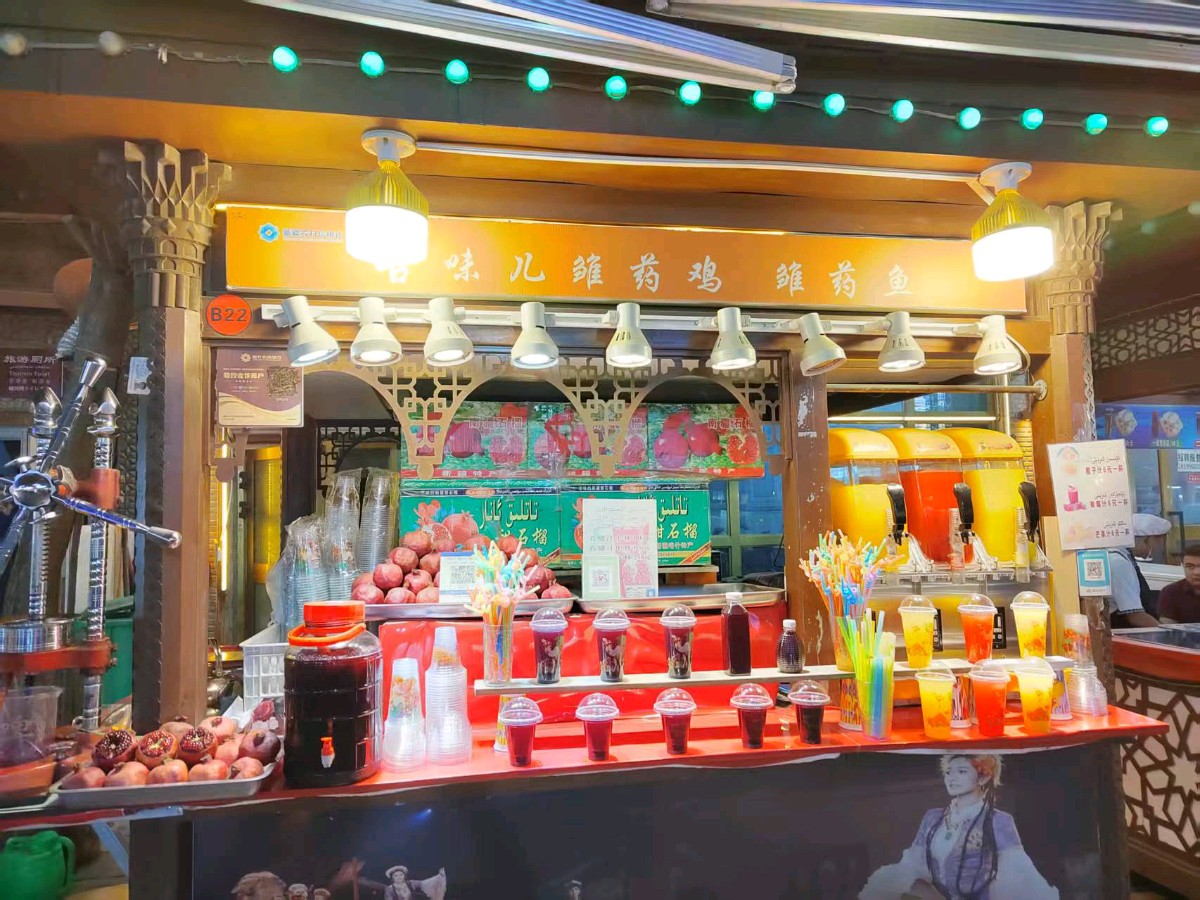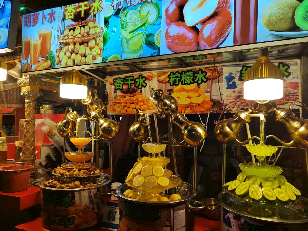 最动人的是夜市的卡瓦斯摊。老艾尼瓦尔用橡木桶装着发酵的麦芽汁,接一杯递给我时,液体在玻璃杯里泛着琥珀色的光。这是用天山雪水做的,他眨眨眼,甜得刚刚好。果然,第一口下去,先是蜂蜜的甜,然后是麦芽的香,最后有一丝类似啤酒花的微苦,在舌尖久久不散。