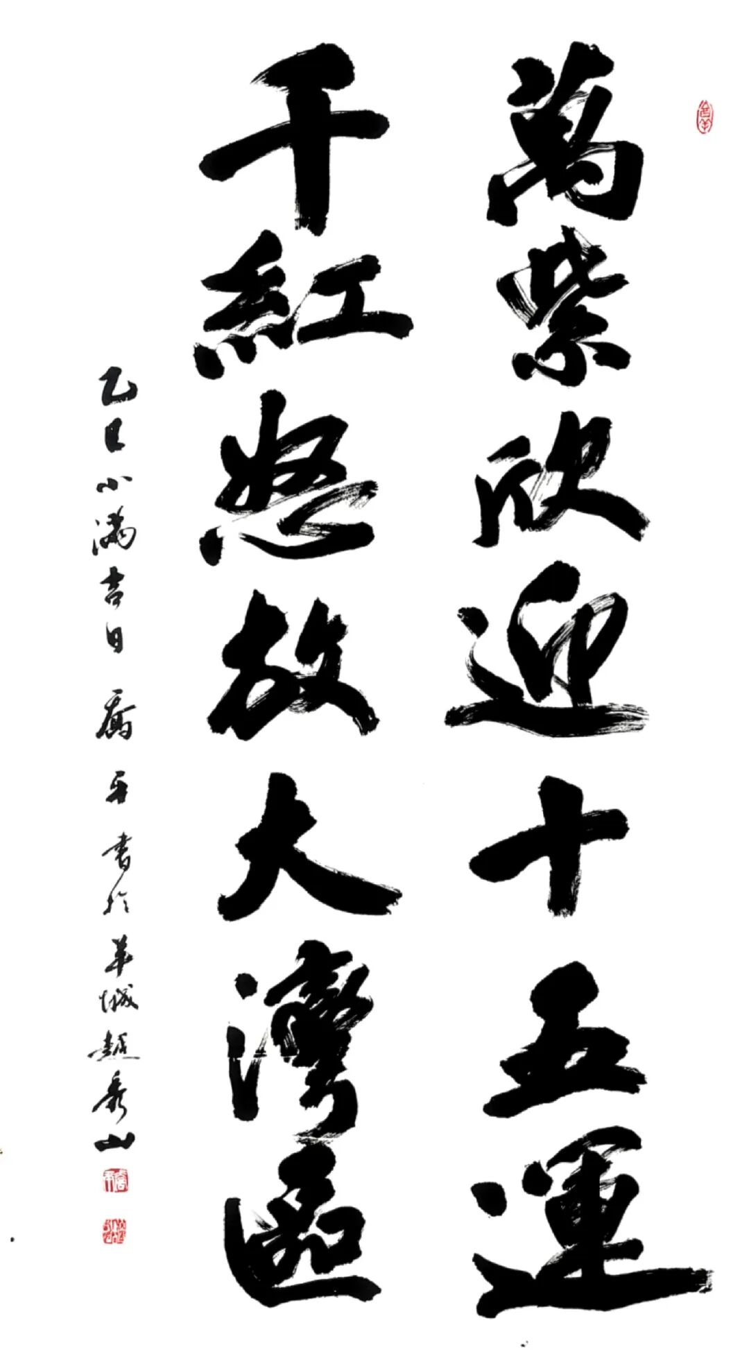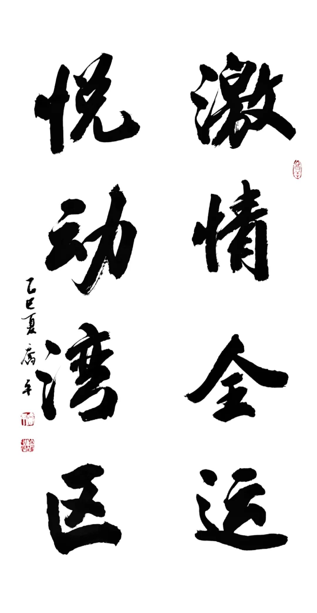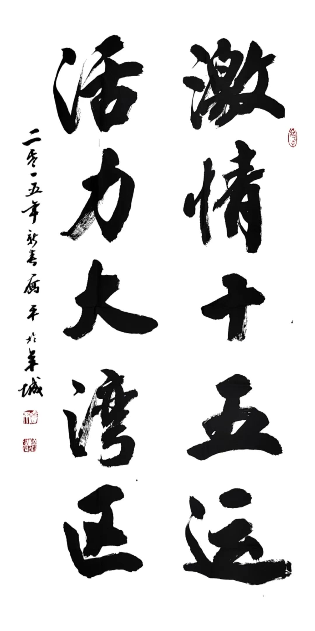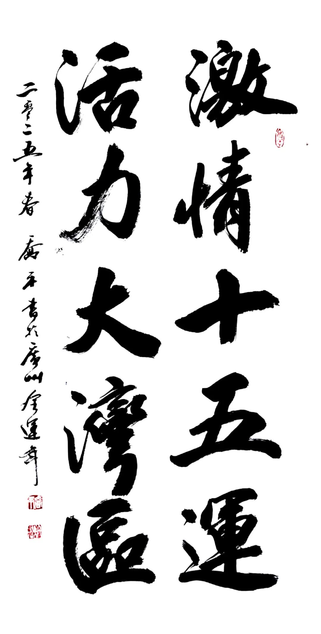 乔平的艺术“破界”,不是颠覆性的媒介革命,而是一场“由技进道”的书法外向扩张——让毛笔走出案头,与公共口号、城市景观、非遗推广、教育公益同频共振;让传统行草与时代语境握手,让“写字”升格为“写事”“写人”“写城”。他用手中的毛笔,完成了一种“温和而坚定”的跨界。乔平历任广州市文联主席、广东省文联副主席,身份决定了他无法只当“书斋墨客”。2010年广州亚运会,他把书法推向城市级传播: 一小时连写6件行书方案,最终确定志愿者口号“一起来更精彩”; 该字体被制作成服装、邮册、海报、纸巾等1000余种特许商品,成为广州亚运视觉符号之一; 此后十余年,他持续为大型活动、轨道交通、社区墙绘题字,将书法从“雅玩”转为“城市导视”,完成了“公共性”破界。在2021“江山如此多娇”个展中,乔平一次性展出篆、隶、楷、行、草五体作品,并大胆引入彩笺、洒金、拼贴等装饰手段: 颜体楷书放大至丈二,以朱砂勾勒边框,形成“红底黑字”的庆典效果; 行草手卷加入矿物颜料泼洒,远观似“彩墨抽象”,近看仍是“二王”笔法; 他提出“字古式新”:字形严守传统,章法、装帧、展陈完全现代,与岭南建筑、玻璃幕墙对话。书法的“色彩禁区”被悄然打开,却“艳而不俗”,保持纸本位的高贵感。三、破“身份”之界:从“官员书法家”到“文艺志愿者”带领广州市书协同仁深入社区、校园、商圈,每年义务写春联超1000幅; 为“赵广军生命热线”题写热线号码,书法作品成为公益广告的视觉核心; 开设“书法与人生”讲座,把写字与时间管理、情绪修炼结合,让书法成为“青少年德育”的载体。“艺术家”与“志愿者”双重身份叠加,使书法第一次有了“社会服务”的量化指标。四、破“媒介”之界:雕塑、影像、舞台的“跨屏”联动乔平早年做过舞美、幻灯、宣传画,熟悉多媒材语言。近年他将书法“嵌入”不同艺术门类: 为广州大型实景剧《船说》题写“船”字,激光投影把笔迹实时解构为“水波纹”,随珠江潮汐起伏; 与广东现代舞团合作《字·影·身》,舞者以身体轨迹“重写”书法,乔平现场挥毫,影像团队捕捉墨迹与舞影的“二次叠影”; 与雕塑家合作《钢铁行草》,把飞白笔触放大成8米耐候钢切片,立于城市阳台,成为“可步入的书法”。毛笔的“线性”被转译为“空间”“影像”“身体”,完成传统符号的当代转场。五、破“教育”之界:让书法成为“第二课堂”核心素养与华南师大合作开发《汉字里的中国》慕课,把“篆隶楷行草”放进历史、地理、科技史语境; 在广州理工、广州大学等高校设立“乔平书法工作坊”,引入设计、动漫、数字媒体专业学生,用AI生成“行草笔迹库”,再手写修正,探讨“算法时代的笔法”; 发起“一日一帖”线上打卡,30分钟直播示范+AI即时评分,半年吸引3.7万名中小学生参与。书法从“技艺”升级为“核心素养”,实现“教育破圈”。面对“乔氏行草”已被市场认可的现状,乔平主动“去标签”: 近作《道德经》长卷,故意弱化飞白与连笔,采用“楷行杂糅”,字字独立,却通篇气韵暗连; 大幅《沁园春·雪》以隶为骨、以草为血,形成“隶面草里”的奇异节奏; 他提出“字如其人,亦当如时代”,把个人性情让位给文本内容与展示场景,让“风格”成为“可变界面”。“去风格化”不是消灭个性,而是让书法回到“服务文本、服务空间、服务公众”的原点。从亚运口号到社区墙绘,从彩书实验到钢铁雕塑,从官员身份到志愿先锋,乔平用四十年的实践表明:书法的当代性,不在于“解构汉字”或“抛弃笔法”,而在于能否把“个人笔墨”转化为“公共能量”;破界之后,毛笔仍是那只毛笔,但它可以写城市、写公益、写人生,也可以被光雕、被舞影、被算法——只要“人”还在场,书法就有下一次破界的理由。 乔平的破界,是一场“守正创新”的温和革命:让传统笔墨与时代脉搏同频,让“写字”成为“写城、写人、写心”。当书法走出书斋,与城市、与大众、与科技握手,它便不再是“古雅”的符号,而是“此刻”的呼吸。
