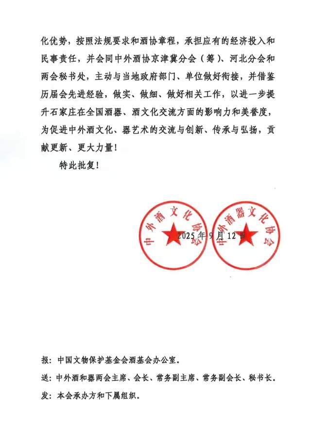 中外酒器文化协会石家庄市分会,经过几个月的选址、商谈、筹备,确定于10月3日至10月4日,在河北省石家庄市的“1953织音部落广场”召开“中外酒器文化协会第三十二届(石家庄)酒文化交流研讨会”。会前的一切准备工作已圆满的完成了,特申请领导们审查批准为盼。