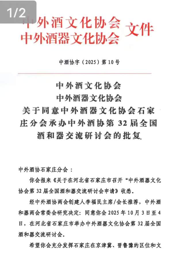 经中外酒器文化协会石家庄市分会筹备,并申请,经中外酒和器两会批准,全国中外酒器第三十二届(石家庄)交流研讨会将于10月3日、4日在河北石家庄长安区1953织音部落广场(原老棉一厂区)召开。