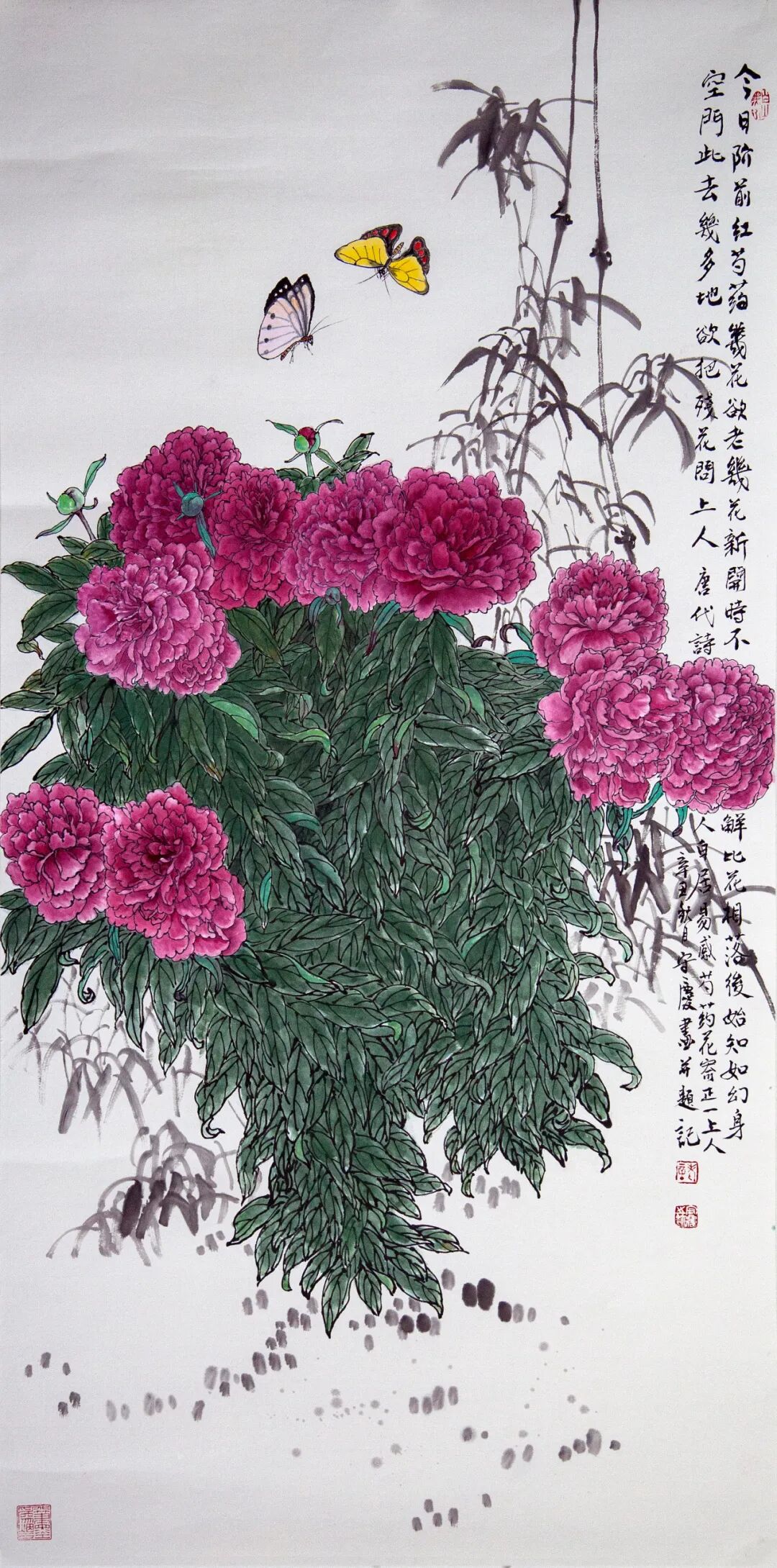 《六合同春》是辛守庆的代表作品之一,这幅作品以牡丹花为主题,通过细腻的笔触和丰富的色彩,展现了牡丹花的富贵与吉祥。画面中,牡丹花枝繁叶茂,花朵娇艳欲滴,展现出一种生机勃勃的景象。画家运用细腻的线条勾勒出牡丹花的轮廓,再用丰富的色彩渲染出花朵的鲜艳与美丽。整幅画面充满了和谐与生机,象征着大自然的和谐共生和人类对美好生活的向往。