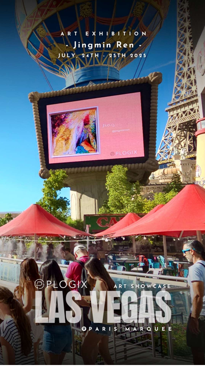 她的作品足迹遍布全球主要城市,从夏威夷到纽约时代广场,从香港到伦敦,再到拉斯维加斯。创作形式涵盖油画、书法以及综合材料,主题从《悉尼今晨》《光之流》到《逍遥游》《庄子三境》,再到《宇宙博物馆》。这些作品如同能量的载体,承载着东方哲思与西方视域的交融,携带着光与希望的力量,与全球观众分享美与心灵的共鸣。