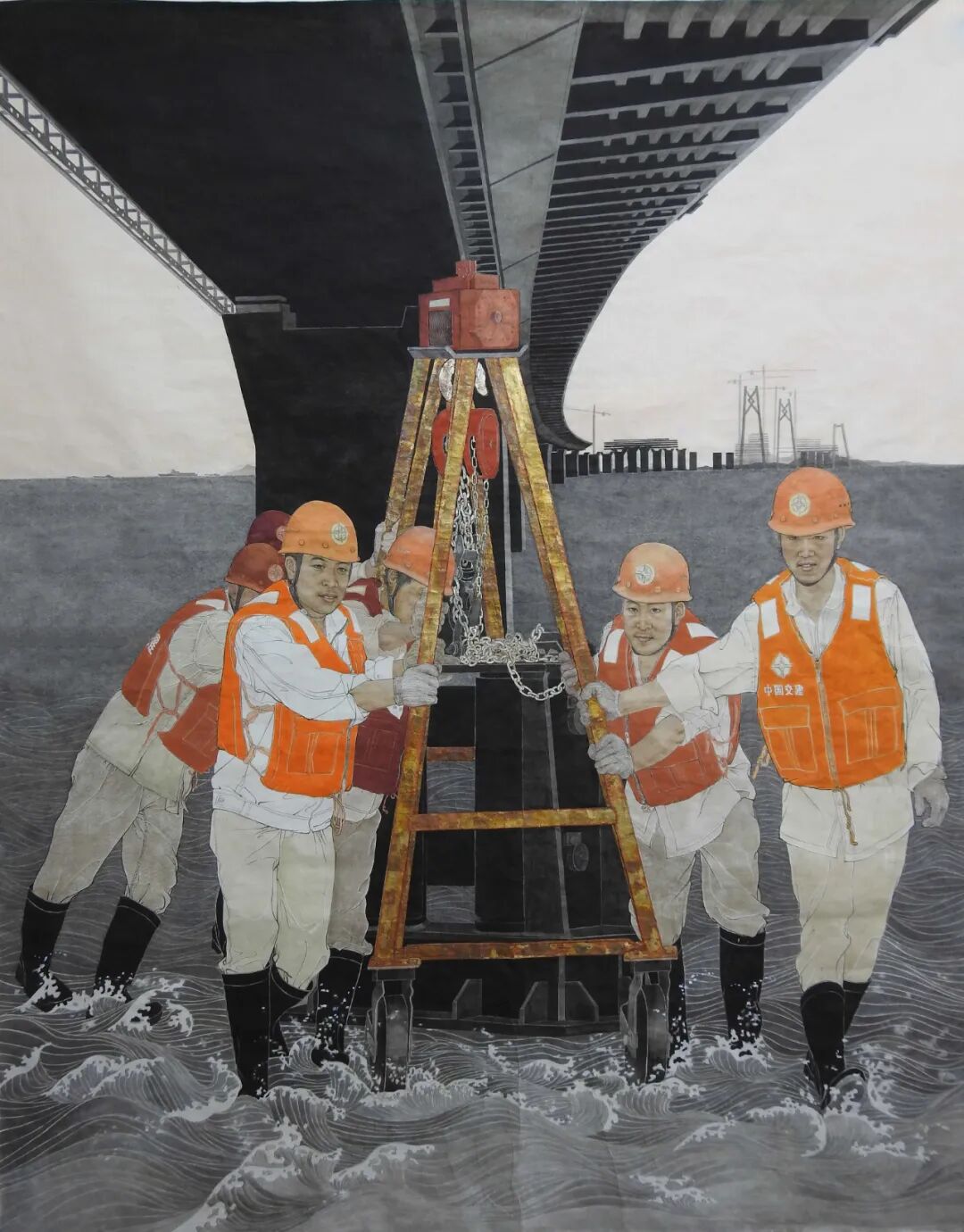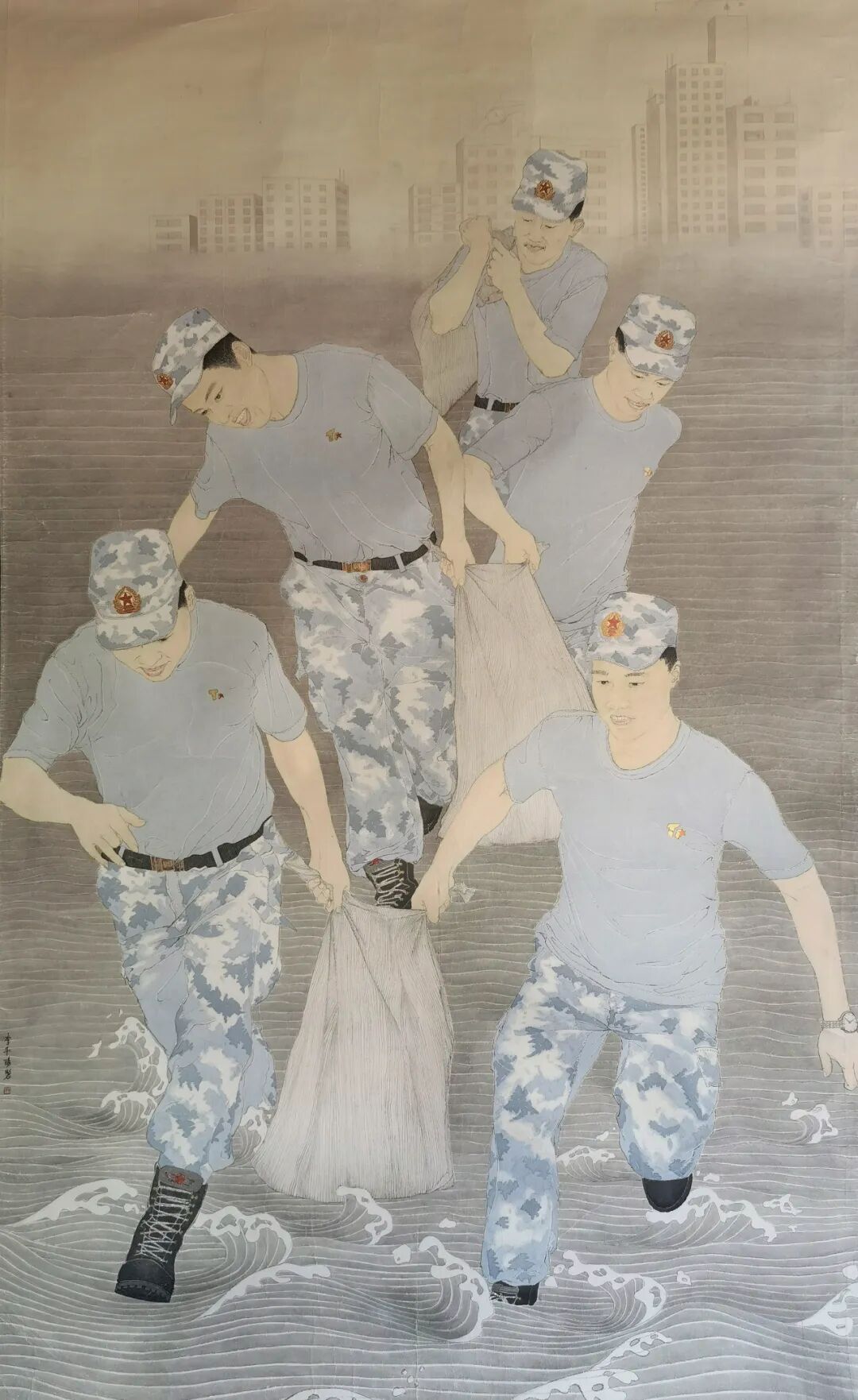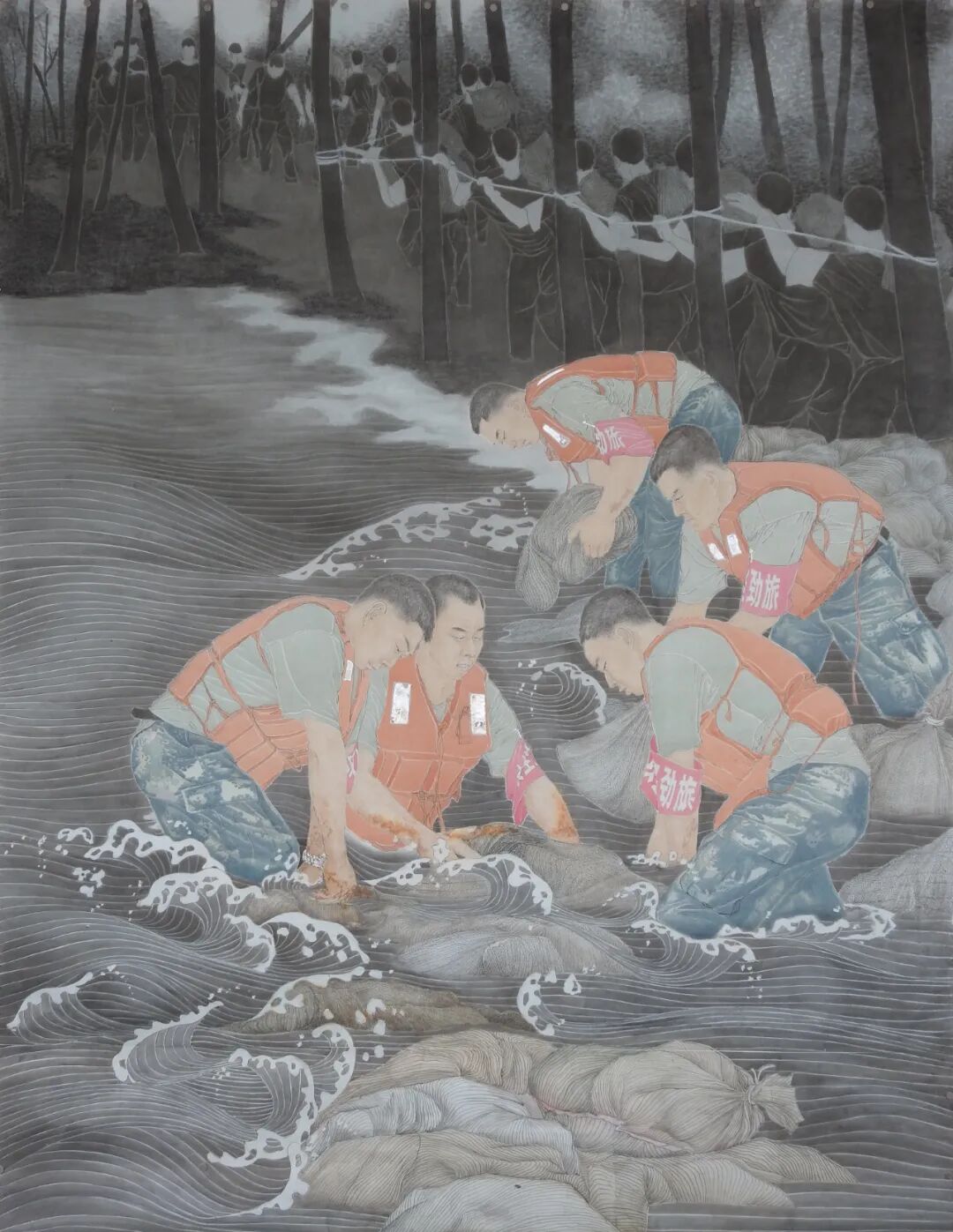 赵本钧 李丰阳《抗洪子弟兵》160cmX230cm
