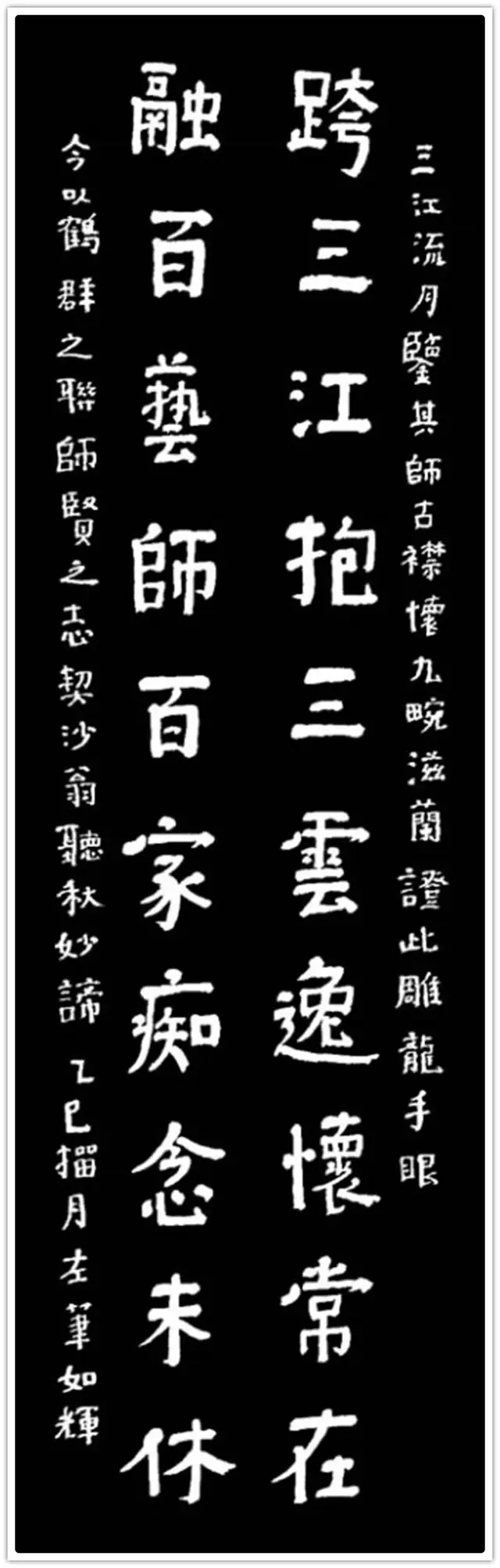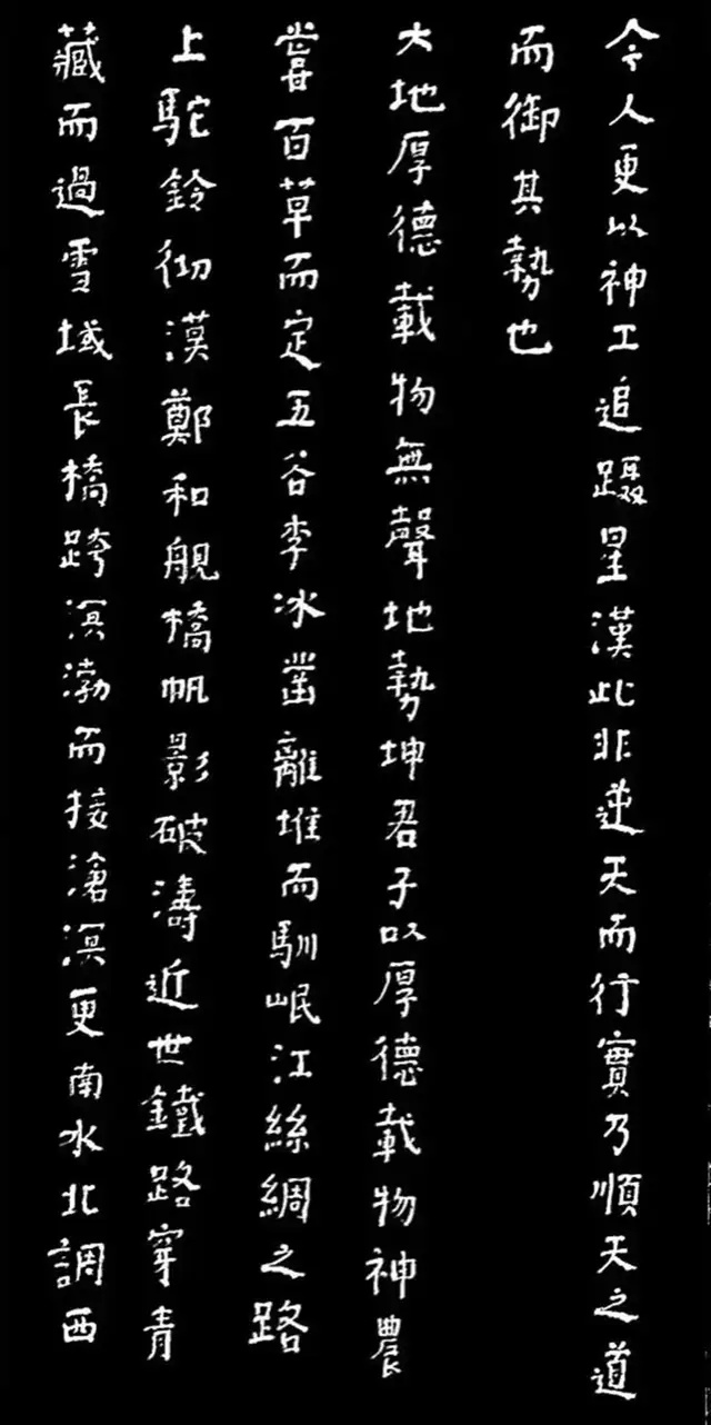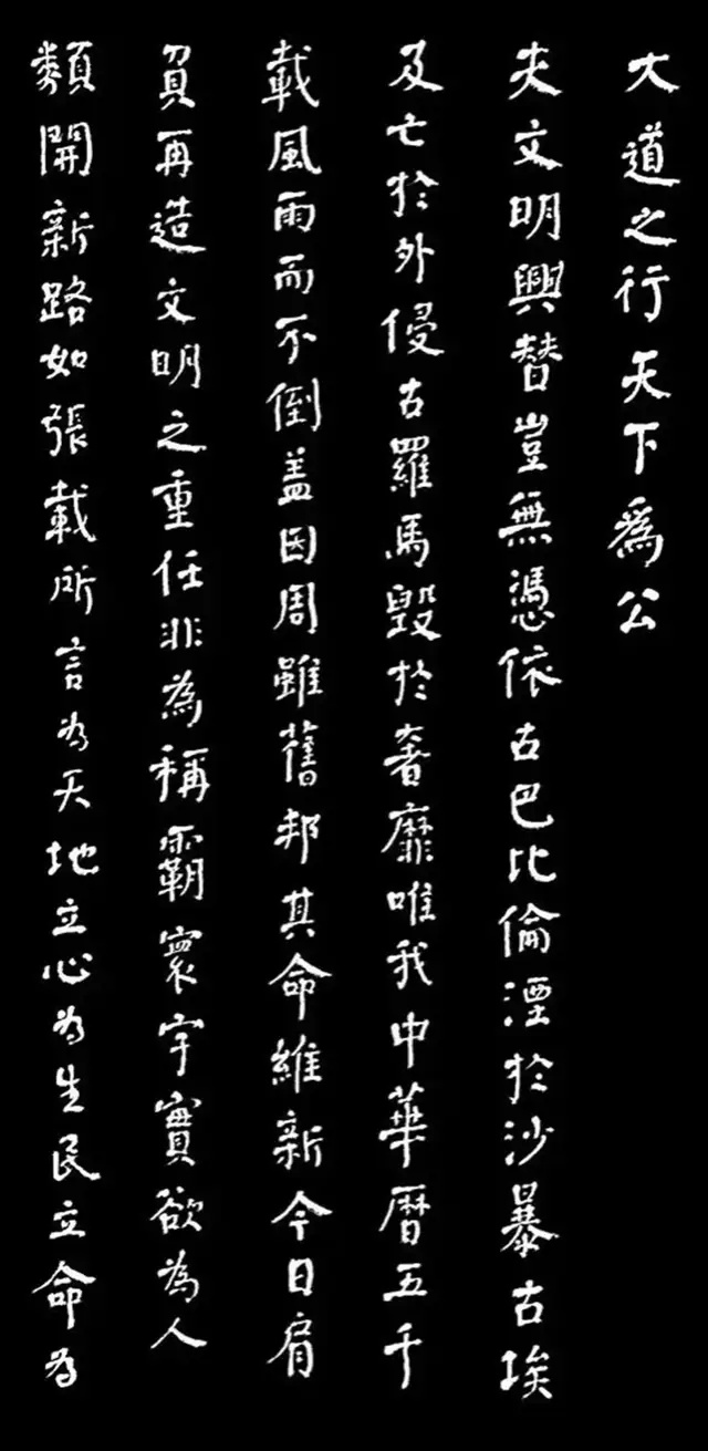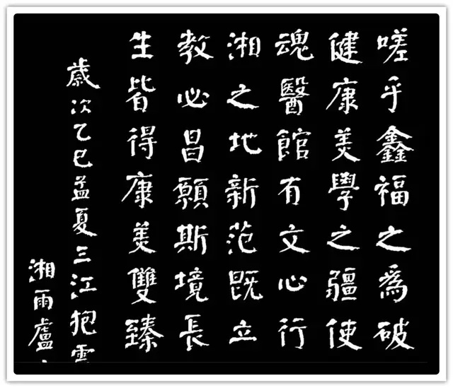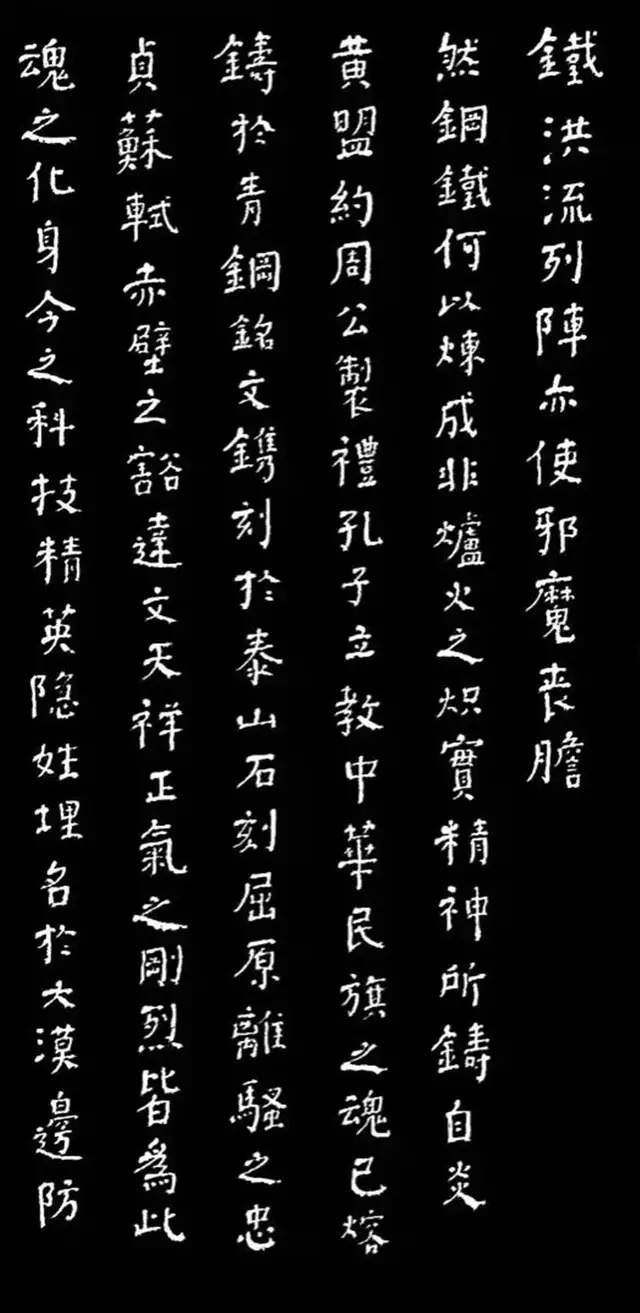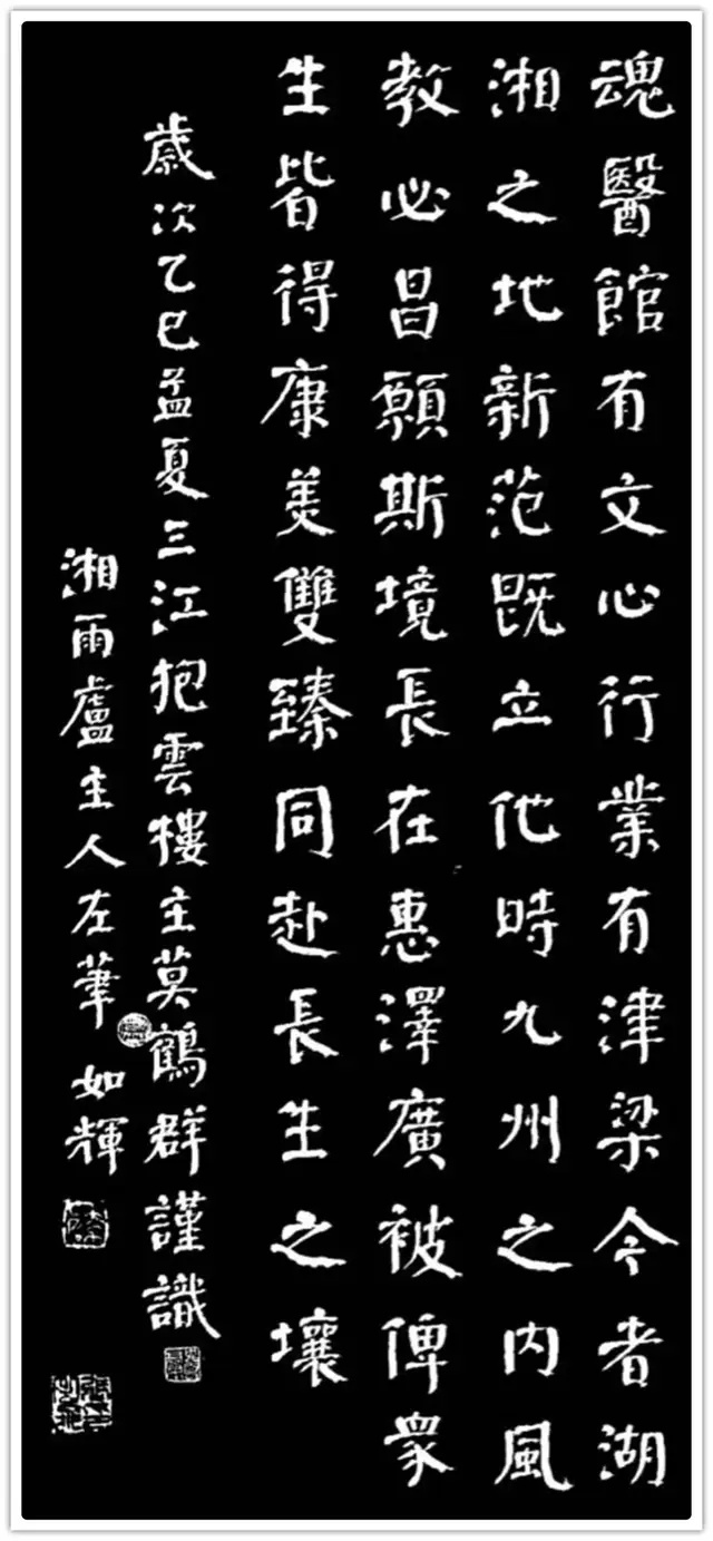 另一副作品,也是如辉在酒埠江灌区即席悬腕书写的爨体《诸葛亮诫子篇》,此作“爨中有颜,颜中有爨”,把颜真卿的宽博宏大与汉隶的朴厚奇态,“若古佛之容”揉合一体,让人不由自主地思接千载,视通万里,回溯起一千五百多年以前,西南边陲少数民族那一段扑朔迷离的历史,情有所动,心亦摇焉。
