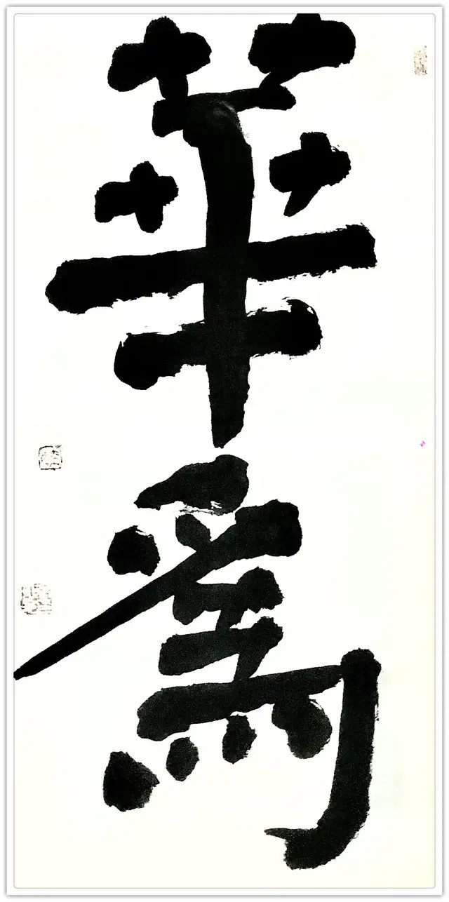 就像一个老顽童,既骨老血浓,又童心未眠,时有天真烂漫之举;又像一个小孩儿,走路尚步履蹒跚,却又故作深沉之态。这种复合而成的综合体,各种矛盾对立,但复合十分自然,既有“蛮夷”之结构布险之朴野率真,又有“书家”之点画顾盼、参差错落,凝重不失流动,冲和不失蕴藉之和谐统一,故而彼此相互成就。