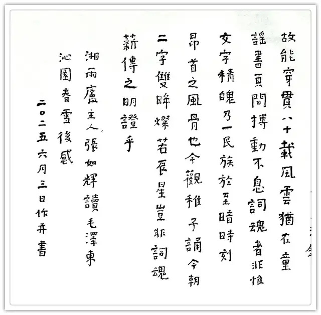 左笔张如辉浸淫书坛五十余年,始终以颜真卿为衣钵,融入爨宝子碑意境,恂恂儒雅,演成新体,独得书卷朴拙之味,赢得时誉。他的钢笔肖像,放开时,线条简约、奔放、洒脱;恬然时,点画短促、精密,块面如锦,所作 180 多位世界各国元首肖像,精气神跃然纸上,独具张氏钢笔素描特征。