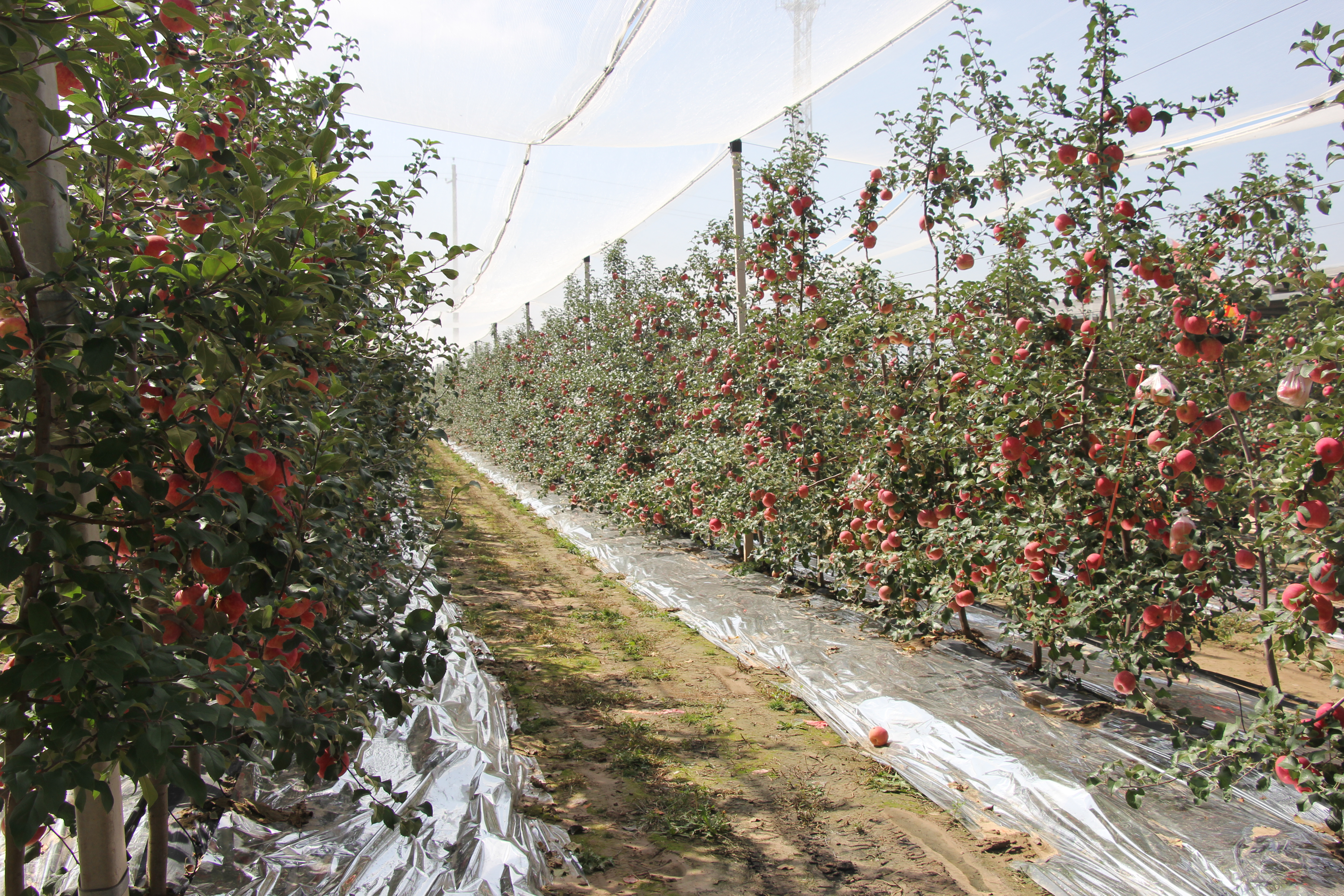 走进绿野果园,现代化农业设施随处可见。不同于传统果园,这里苹果种植采用先进的管理模式,每一株果树的行距、株距都经过精准测算,既保证了通风透光,又最大化利用土地资源,配套了水肥一体化系统,通过滴灌技术将水分和养分直接输送到果树根部,不仅节水节肥30%以上,还能根据果树生长周期精准调控,让苹果品质更稳定。