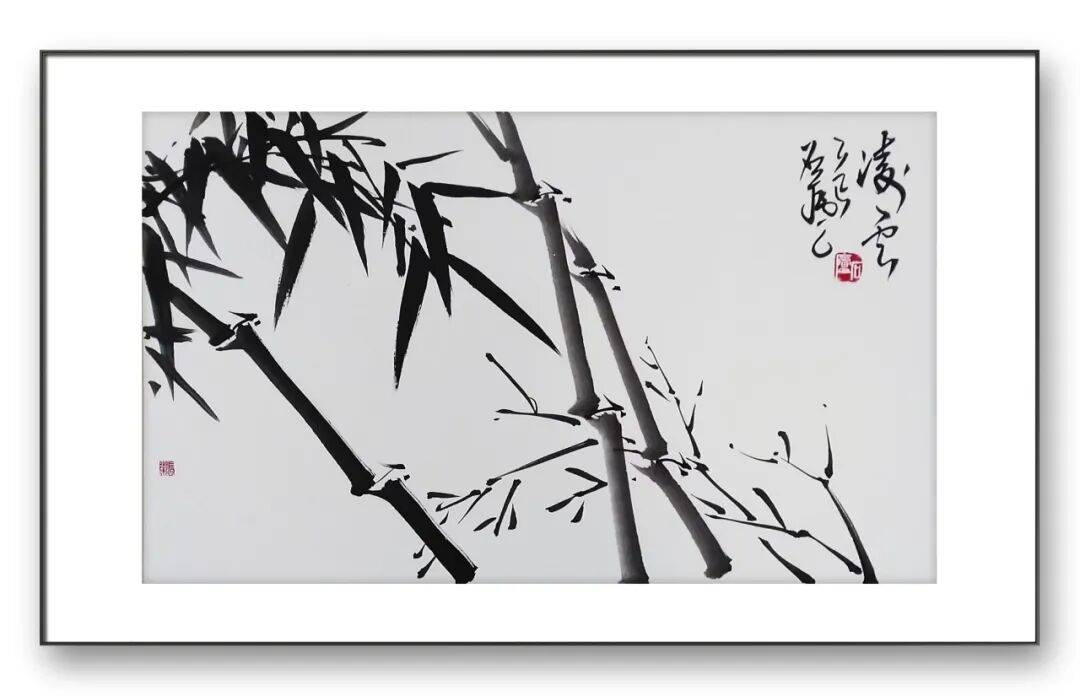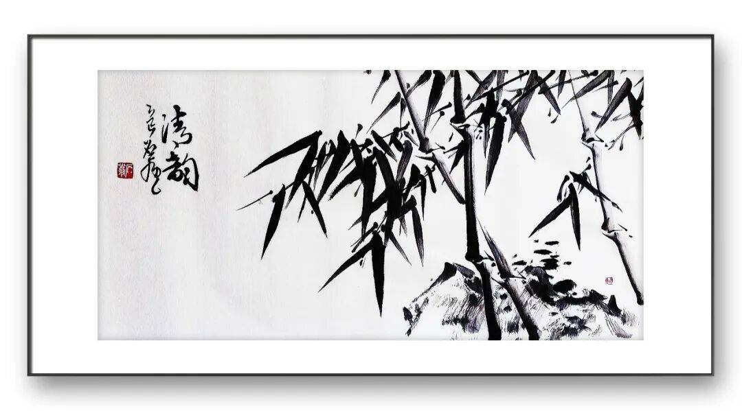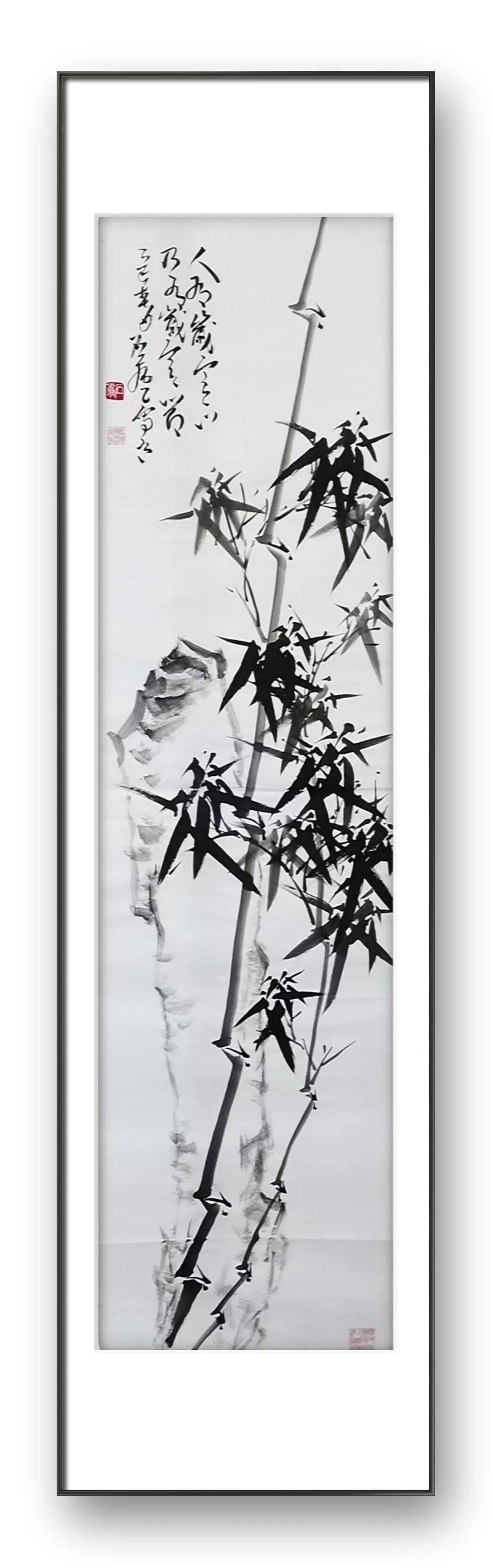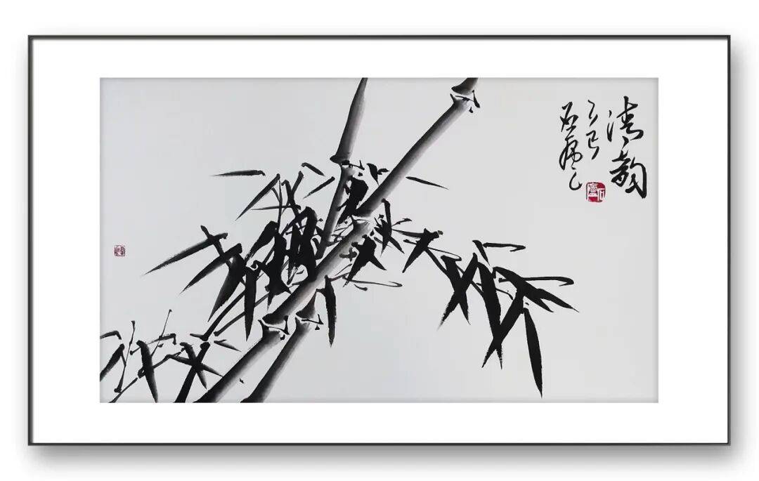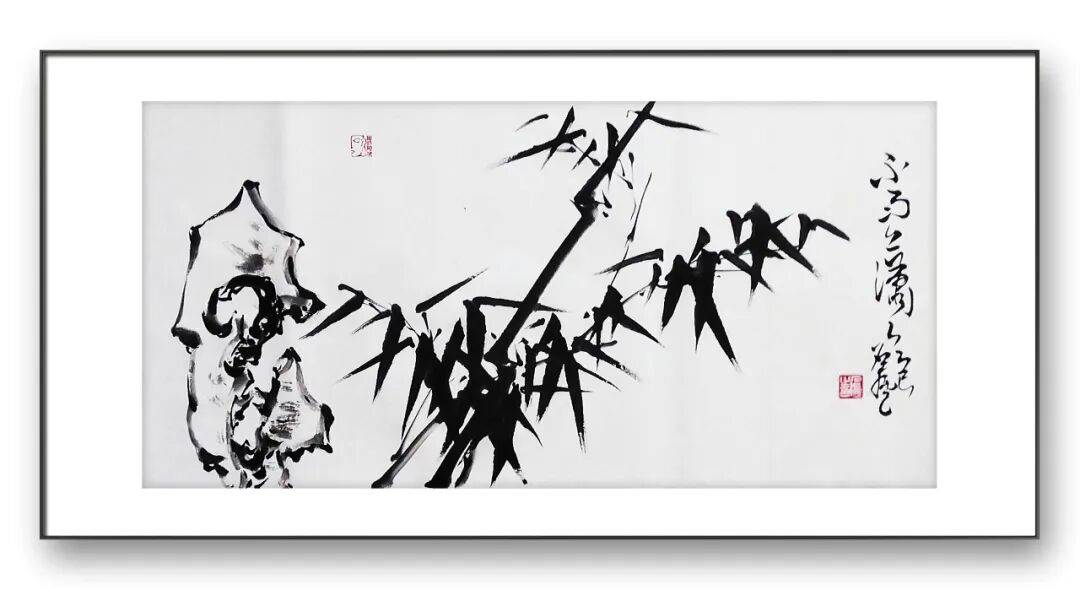 观其画竹之作,最是令人心折。竹子,在中国文化中本就承载着高洁、坚韧的精神象征,石庐先生笔下的竹,更是将这份神韵发挥到了极致。那竹干,以浓淡相宜的墨色勾勒,或挺拔直立,如君子傲骨嶙峋;或略有倾斜,似在清风中悠然摇曳,却自有一股不屈的劲道。竹节的刻画,简洁而精准,寥寥几笔,便将竹子“节节高升”的形态与内在的气节感传递出来。竹叶的处理更是妙绝,他以灵动多变的笔触,绘出竹叶的疏密聚散、俯仰向背。有的叶片浓墨重彩,如铁画银钩,尽显力量;有的则淡墨轻染,似有微风拂过,缥缈灵动。整幅竹画,墨气淋漓,却又层次分明,既有着工笔的细致入微,又兼具写意的酣畅洒脱,让竹子的清雅之姿与刚正之气跃然纸上,仿佛能听到竹叶在风中沙沙作响,感受到那份超凡脱俗的君子之风。