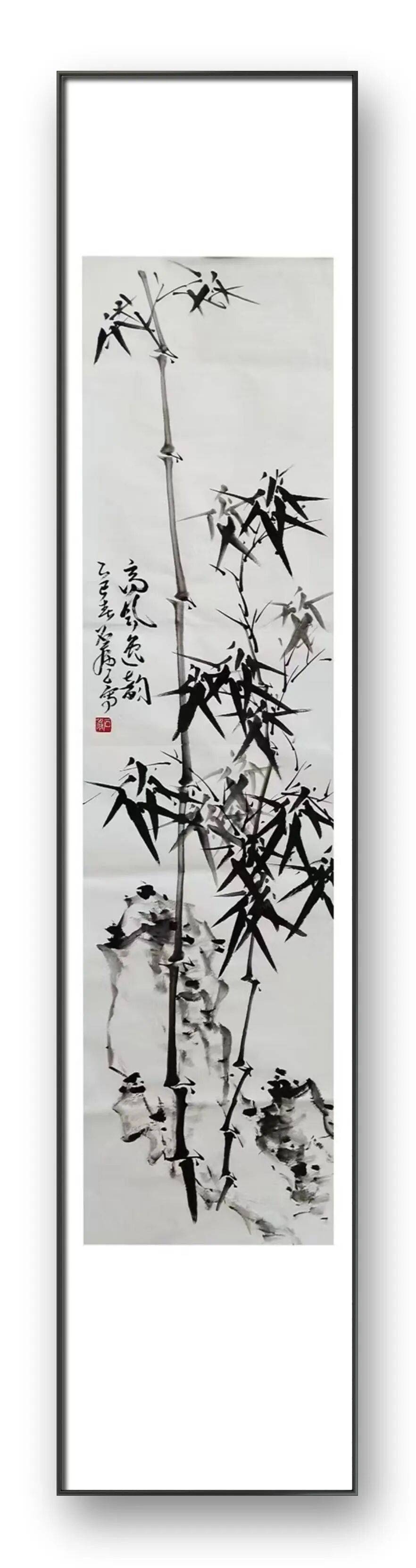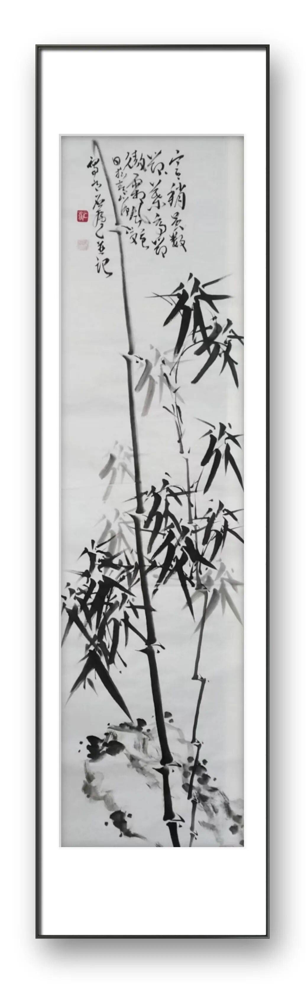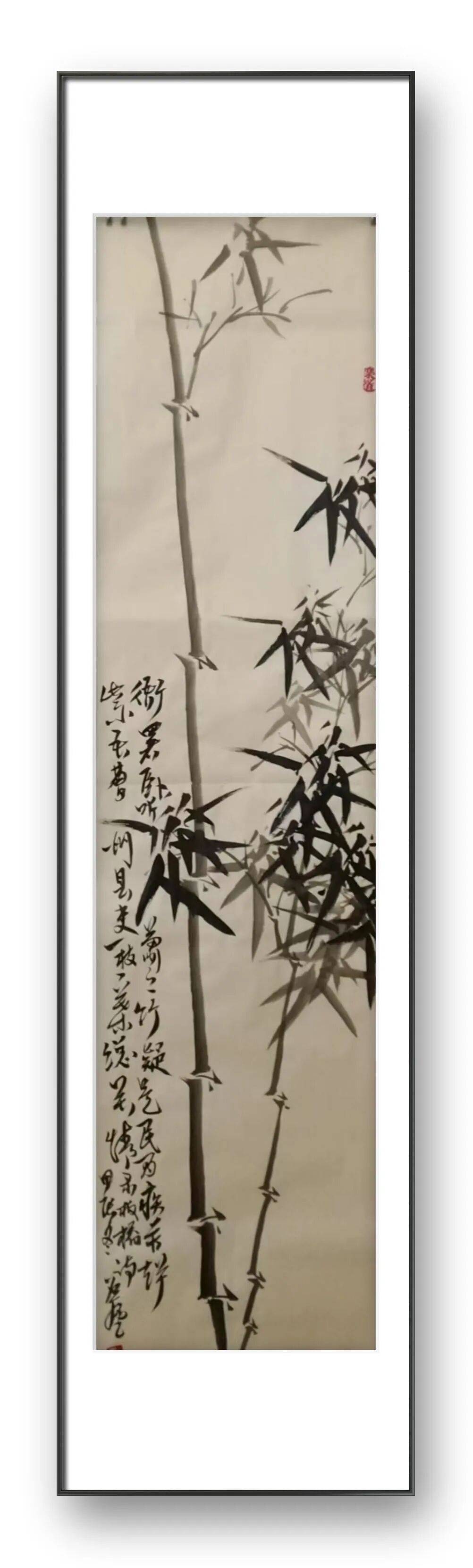 观其画竹之作,最是令人心折。竹子,在中国文化中本就承载着高洁、坚韧的精神象征,石庐先生笔下的竹,更是将这份神韵发挥到了极致。那竹干,以浓淡相宜的墨色勾勒,或挺拔直立,如君子傲骨嶙峋;或略有倾斜,似在清风中悠然摇曳,却自有一股不屈的劲道。竹节的刻画,简洁而精准,寥寥几笔,便将竹子“节节高升”的形态与内在的气节感传递出来。竹叶的处理更是妙绝,他以灵动多变的笔触,绘出竹叶的疏密聚散、俯仰向背。有的叶片浓墨重彩,如铁画银钩,尽显力量;有的则淡墨轻染,似有微风拂过,缥缈灵动。整幅竹画,墨气淋漓,却又层次分明,既有着工笔的细致入微,又兼具写意的酣畅洒脱,让竹子的清雅之姿与刚正之气跃然纸上,仿佛能听到竹叶在风中沙沙作响,感受到那份超凡脱俗的君子之风。