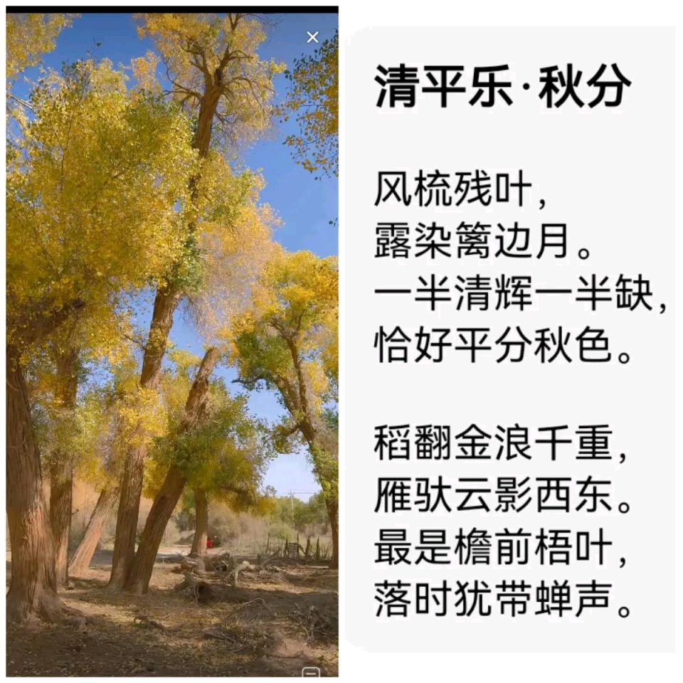 昼夜对半,桂子摇金灿。望断横天南归雁,稻浪翻金倾炫。