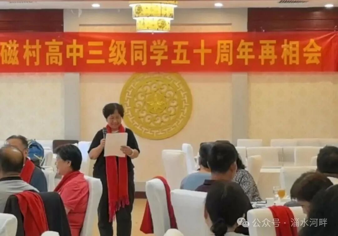 她说:“亲爱的同学们,今天我们跨越半个世纪的时光长河,终于又聚在了一起。五十年前的青春容貌,已刻满了岁月的痕迹。五十年前的朗朗书声,仿佛还在耳畔回响……,