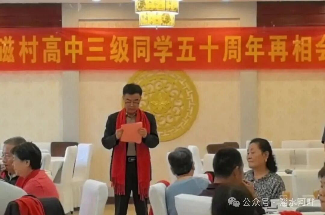 五十年的风雨,教会了我们珍惜当下,五十年的沉淀,更让我们懂得了感恩。让我们保重身体,常聚常欢,让这份情谊,如常年老酒,越久越醇,愈久愈香。青春永不散场,让友谊地久天长!”