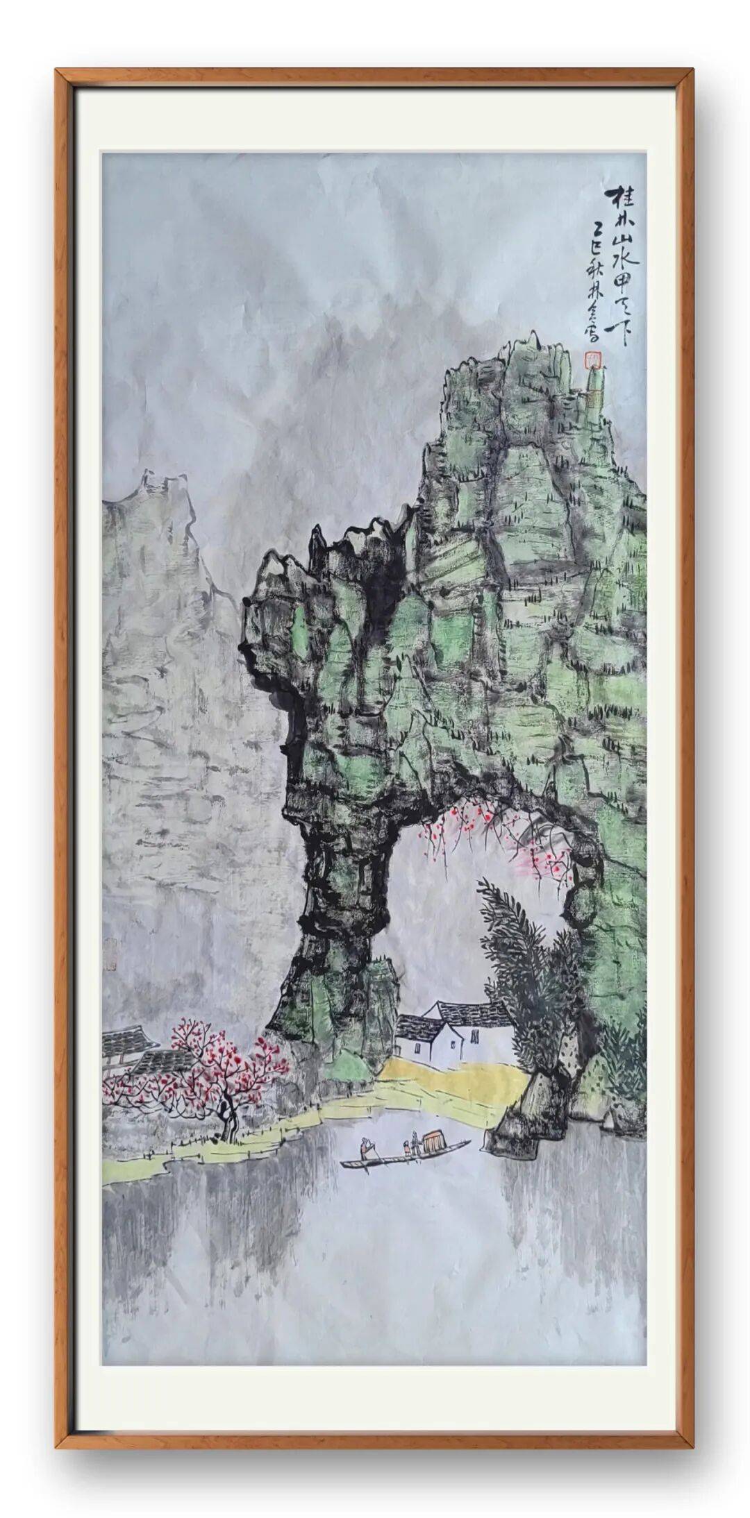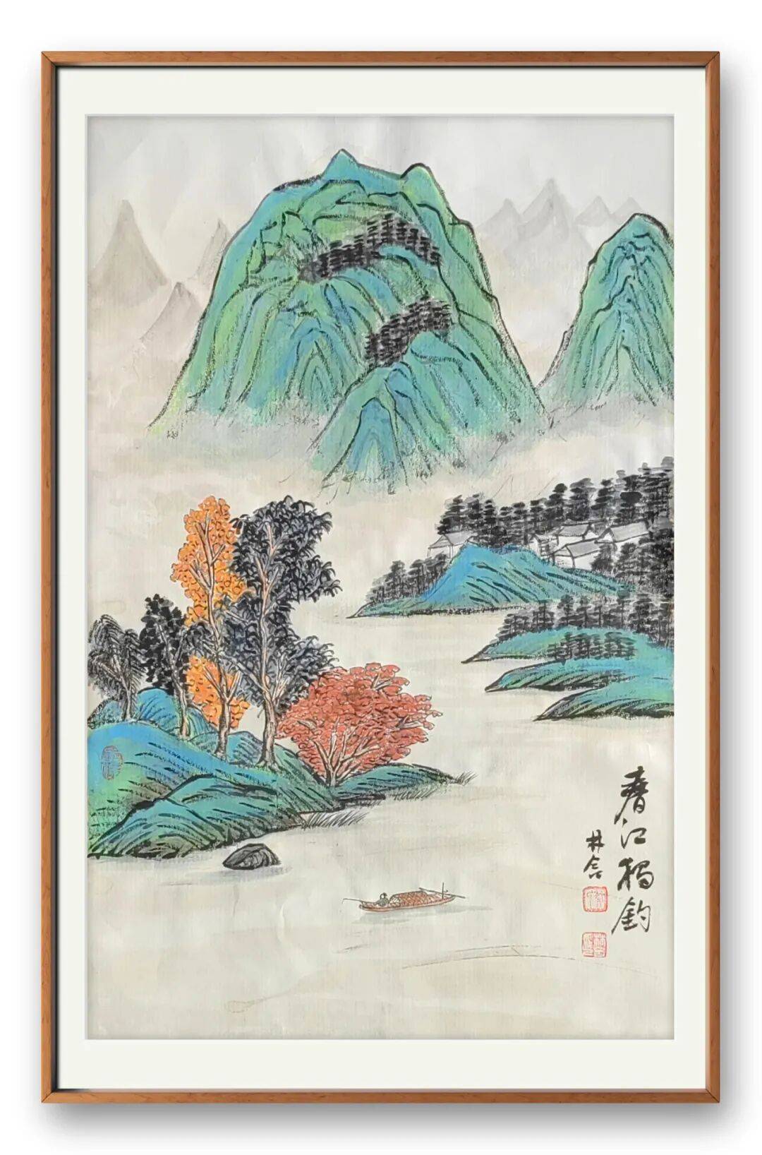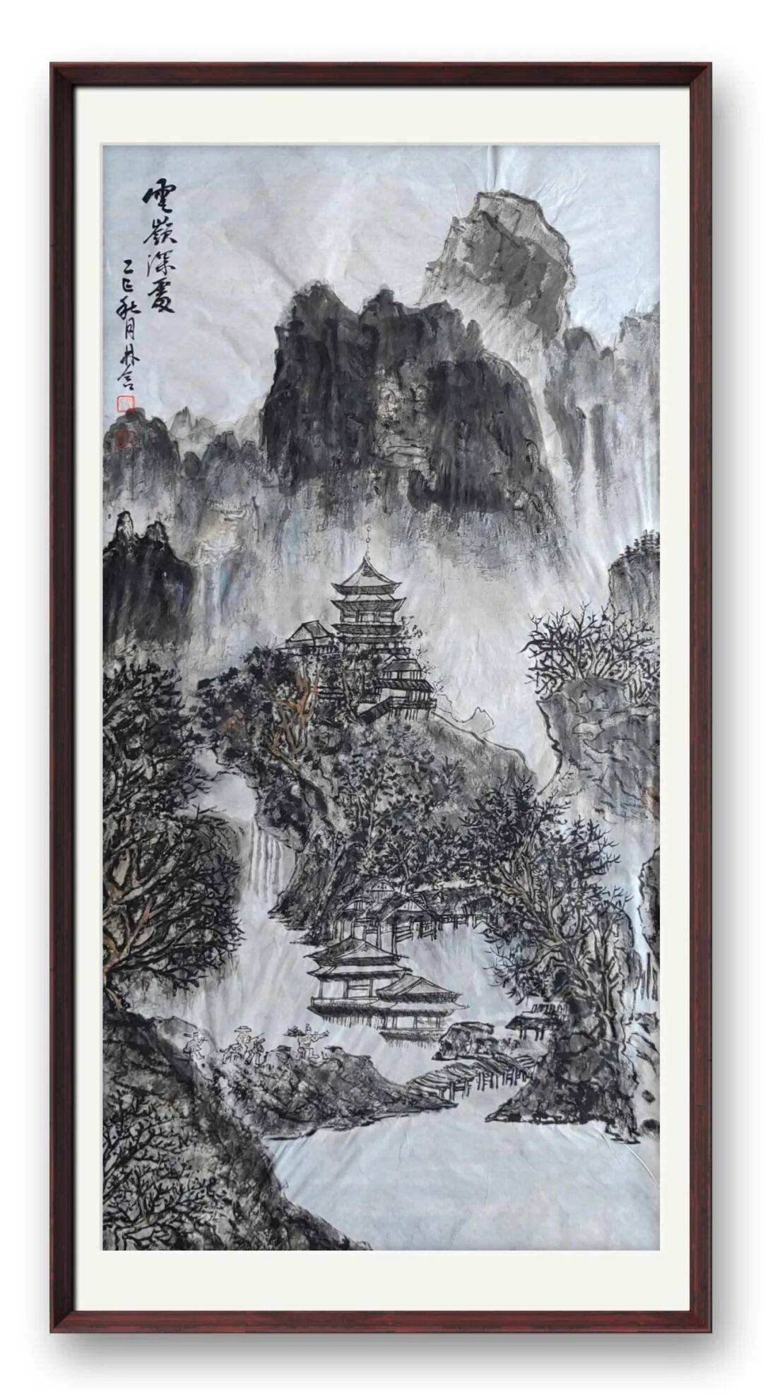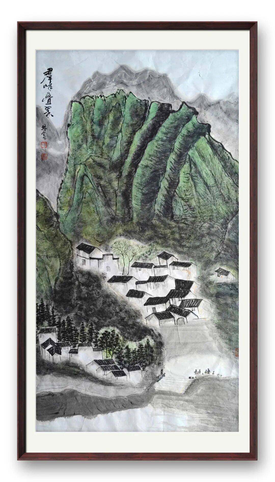 老师的山水,是心与自然的对话,是笔墨与山河的共鸣。她笔下的山石,非简单的形态复刻,而是将山石的苍劲风骨凝于笔端,嶙峋处见力道,褶皱间藏岁月;山间雾霭,亦非随意晕染,而是以淡墨铺陈,似流动的诗行,让静谧的山水有了灵动气息;坡上草木,或浓或淡,或疏或密,皆透着蓬勃的生命力,仿佛能听见风声穿林、溪流潺潺。这般意境,绝非凭空想象,而是她数十载踏遍名山大川,以眼观、以心悟,将自然之美内化于心后的必然呈现。线条的长短粗细、墨色的浓淡干湿,皆恰到好处,既守传统山水的章法,又融个人对山水的理解,让每一幅山水都有了独特的精神内核。