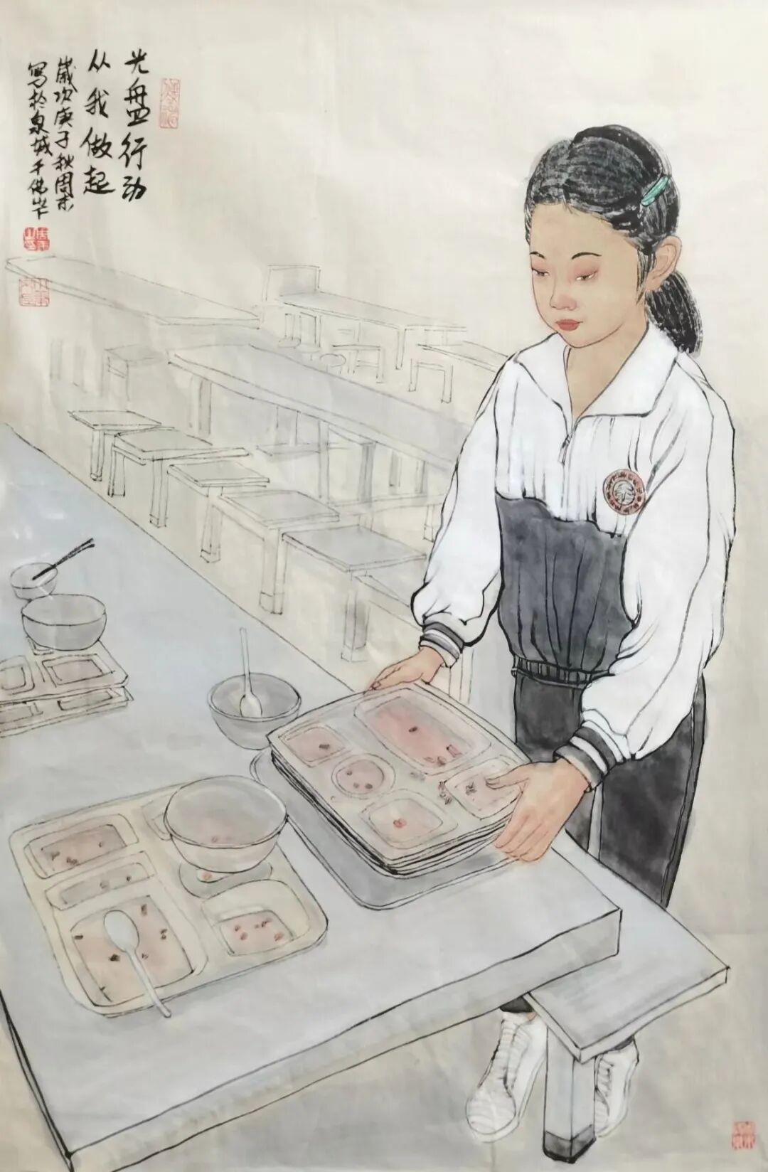 2021年9月份作品《光盘行动,从我做起》入选中国女画家协会《节约资源.积极倡导和推行分餐制网络作品展。